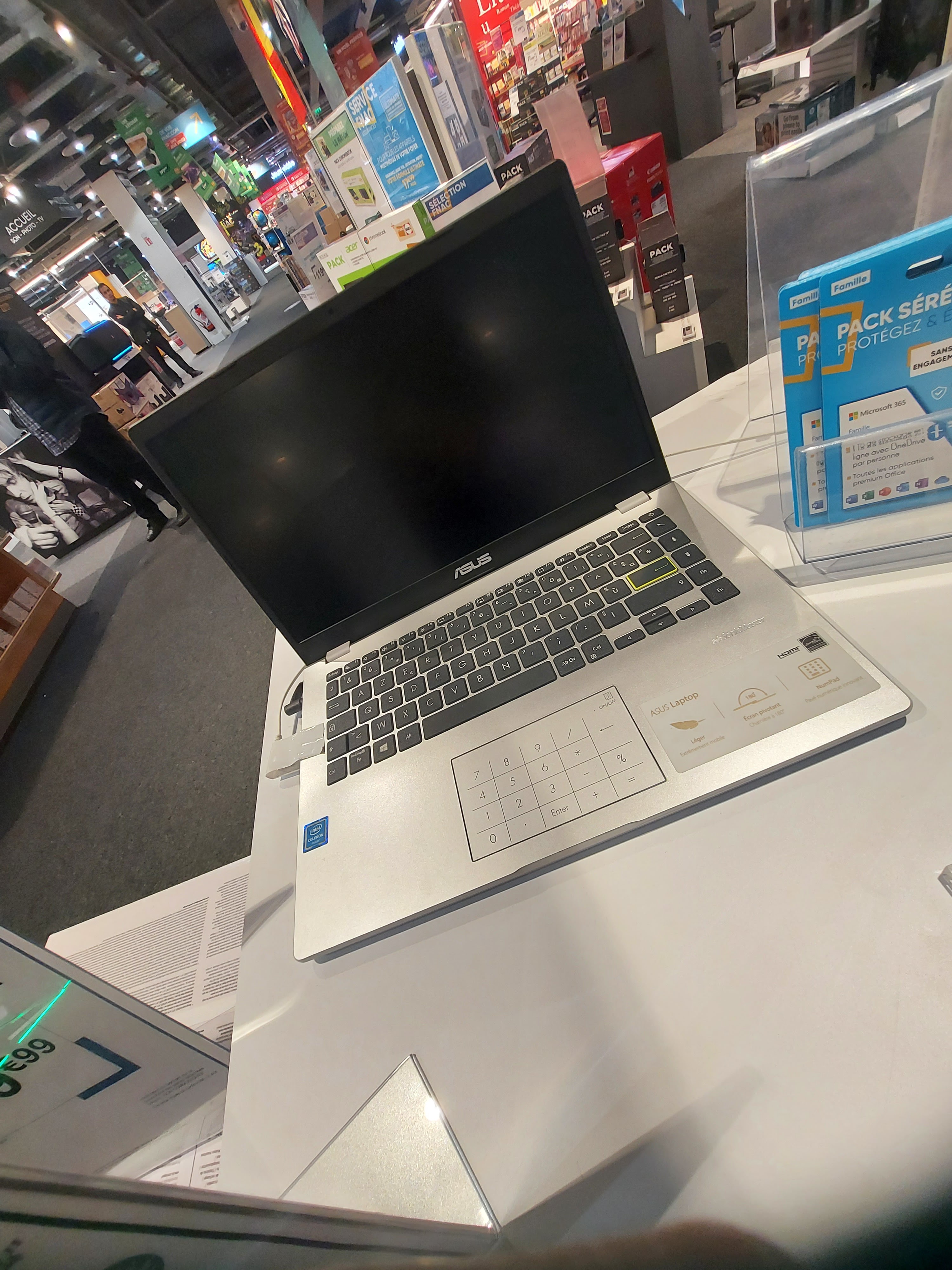Un centre commercial, on y va parce qu'on peut trouver de tout, depuis l'alimentation à l'outillage et l'informatique ! Mais , car rien ne peut être nulle part, on cherche, on cherche, et on ne trouve pas ce quelque chose dont on ne sait pas formuler le mot! On est dans le bon rayon, mais quelques appareils qui se ressemblent mais aux prix très variés, mais POURQUOI? Personne pour vous renseigner! Ni en terme d'utilisation ni en terme de game... Alors, on erre, comme une âme en peine, dans la solitude de l'idiot qui est complètement OUT ! La personne sensée nous renseigner, est plongée dans sa bureaucratie de gestionnaire, qu'on n'ose pas déranger, même , alors qu'elle nous a remarqué en train de stationner devant elle ! En fait , je crois bien que pour certains achats, internet est notre seule issue . Et personnellement, je me permets de le regretter...