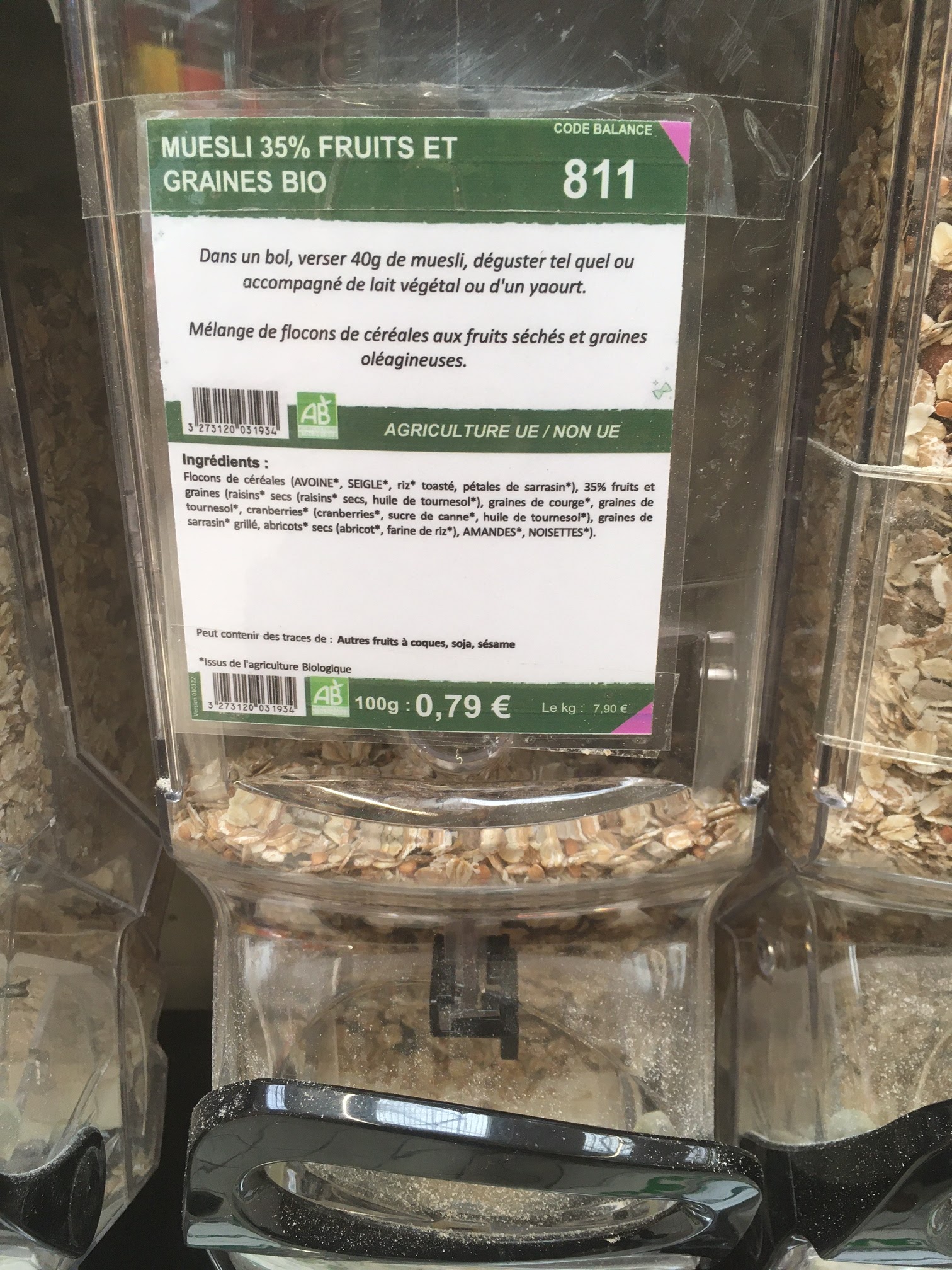 Habitué de ce Carrefour, j y achetais notamment des cereales bio en vrac...jusqu a hier! une mite alimentaire dans le sachet que je venais de me servir...Quand on sait qu une mite pond 200 oeufs dans les cereales qu elle trouve, je me suis bien gardé de continuer mes achats dans ce rayon...La mise à disposition d un tel rayon est une bonne idée mais elle suppose d etre tenue de maniere irreprochable, ce qui vraisemblabement n est pas le cas ici...