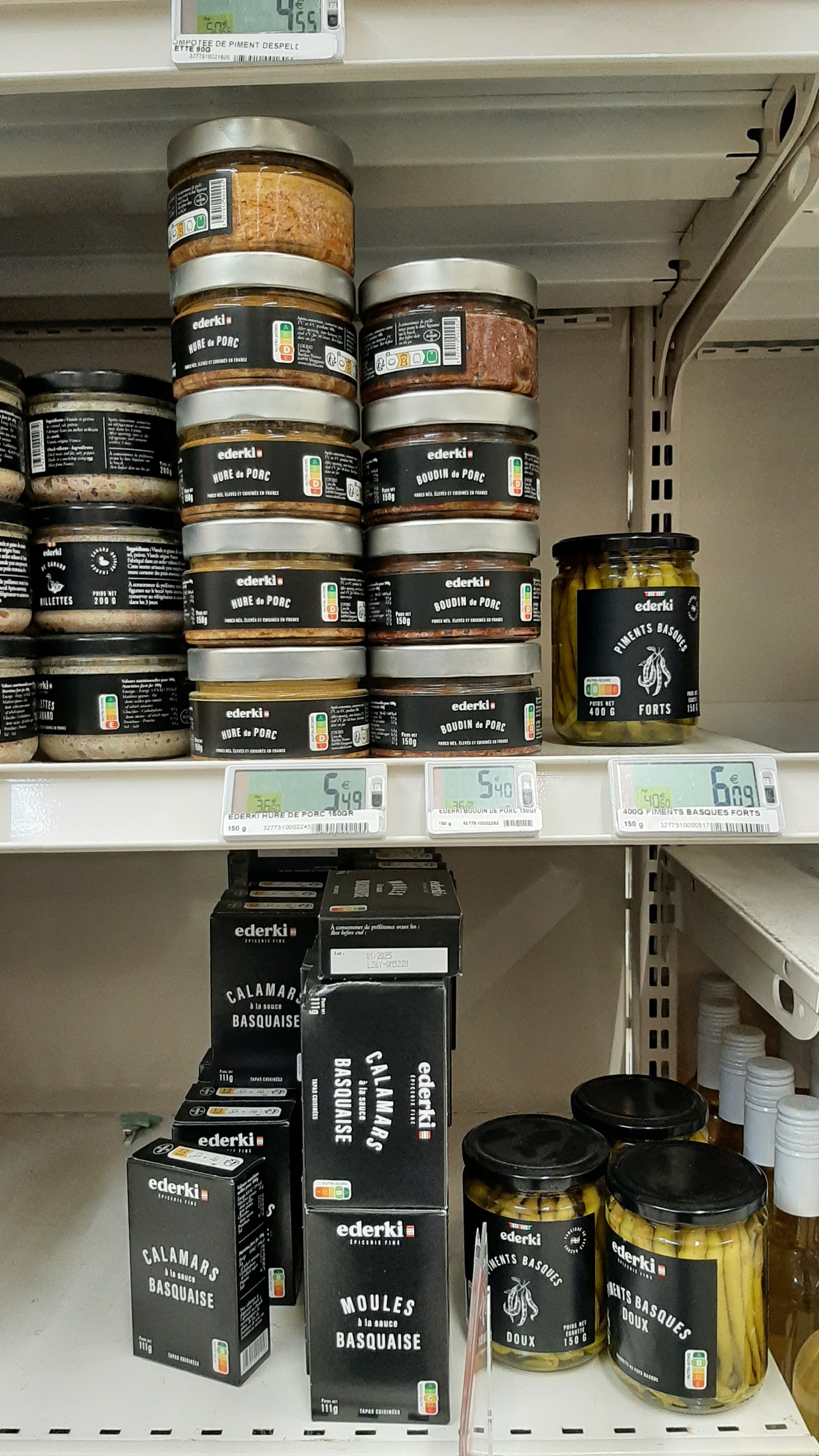 Magasin propre. Bien achalandé Un rayon de produits basques.