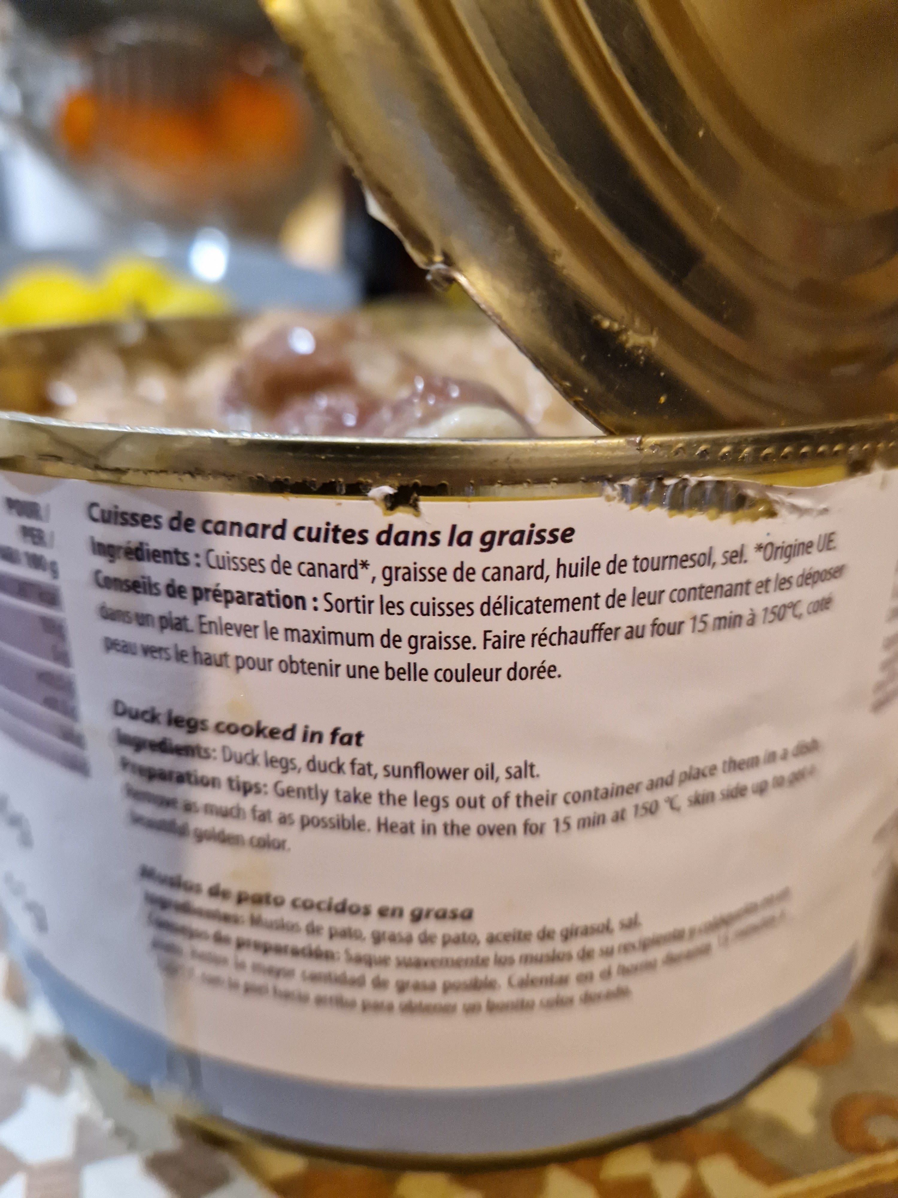 Merci Carrefour et la marque LARNAUDIE. J'ai acheté des cuisses confites , ingrédients vérifiés, cuisses confites et je me retrouve avec un cassoulet. 1re et dernière fois que j'achète cette marque. Manque de sérieux de la marque et de Carrefour qui ne vérifie pas la qualité des produits vendus par ses fournisseurs . Photos à l'appui