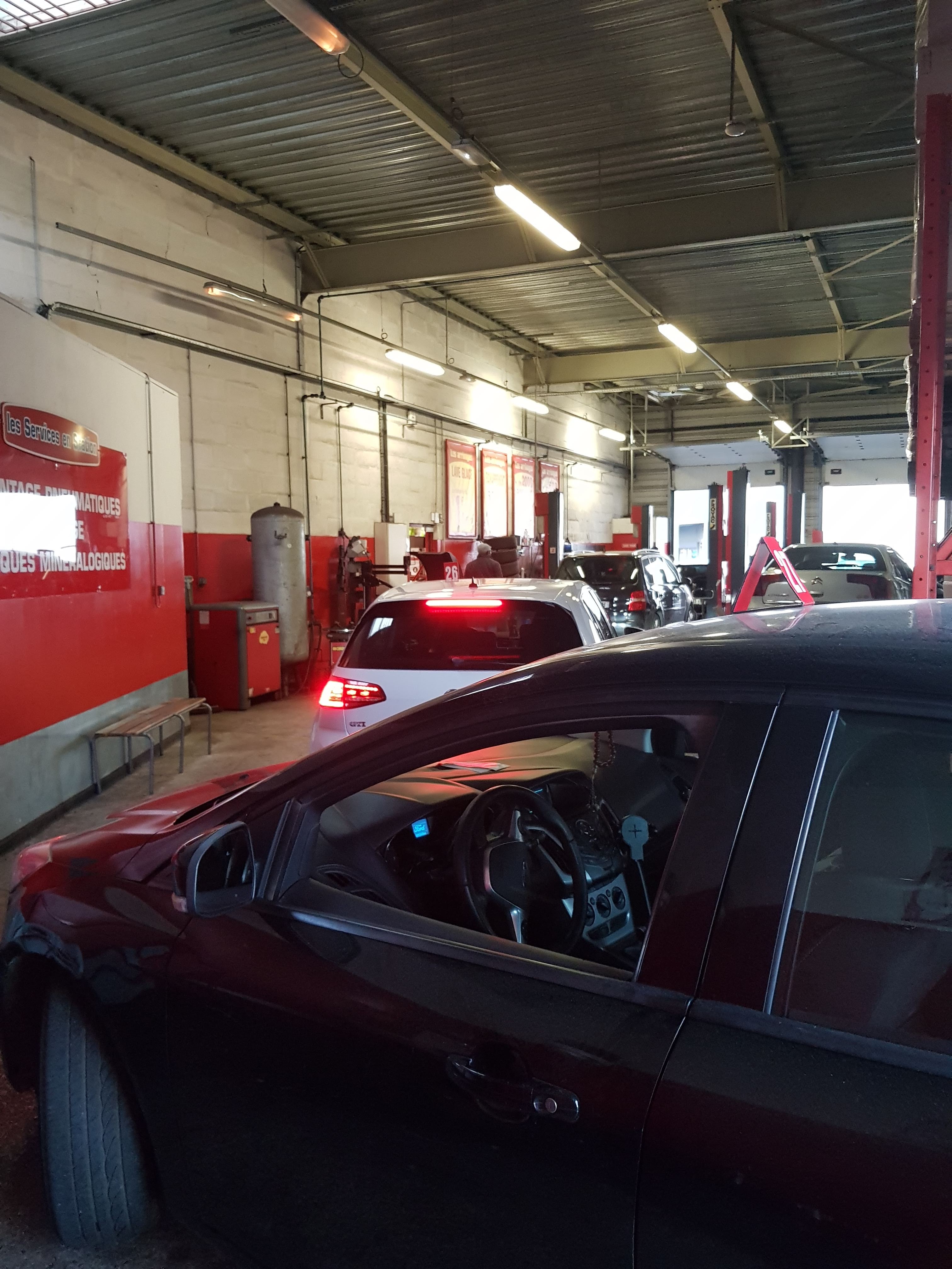 Magasin pourvu d'un atelier pour le remplacement des pneus et autres, liés à l'automobile. Dommage que cet atelier travaille encore à l'ancienne pour remplacer des pneus taille basse et grande dimension,avec des demontes pneus où les jantes prennent des marques au moment de la dépose repose du pneu. Il serait judicieux d'avoir la machine adaptée pour ce type de pneumatique, qui concerne 75% du parc automobile. Deux techniciens sont intervenus sur mon véhicule. Lorsque je me suis retrouvé sur la route, le voyant anomalie de pression des pneus s'est déclenché. Obliger de revoir la pression des pneus, où le constat est sans appel avec un écart de pression de 400gr, entre les pneus. Ce serait bien que les procédures soient respectées ? Mon véhicule qui était propre est ressorti avec des jantes sales ?