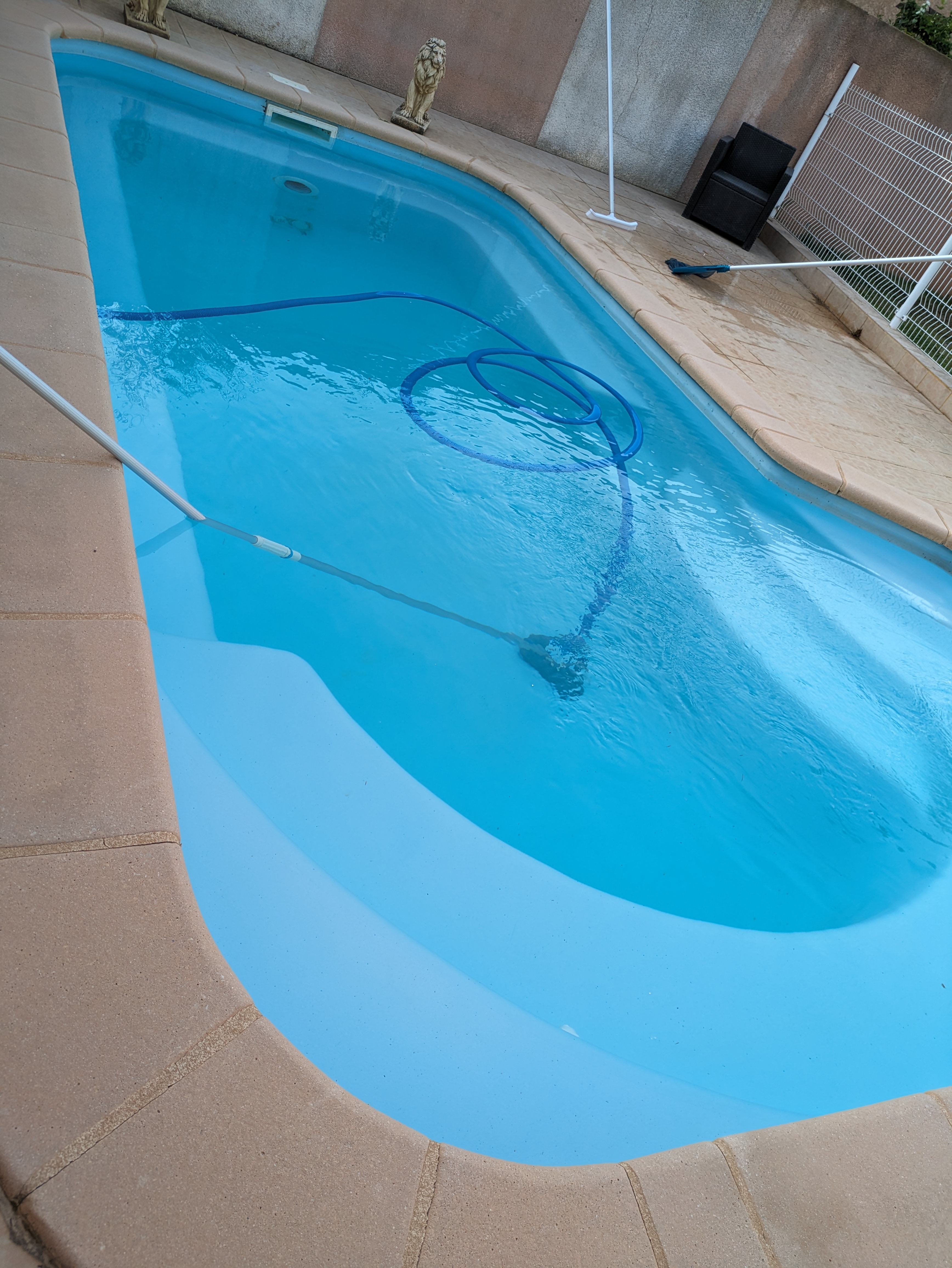 Merci aux vendeurs pour toute l'aide apportée et les précieux conseils pour venir à bout de nos algues... Puis pour réparer tout seuls comme des grands ce jour le tuyau et le raccord que nous avions cassé suite à une malencontreuse chute dans notre local piscine.