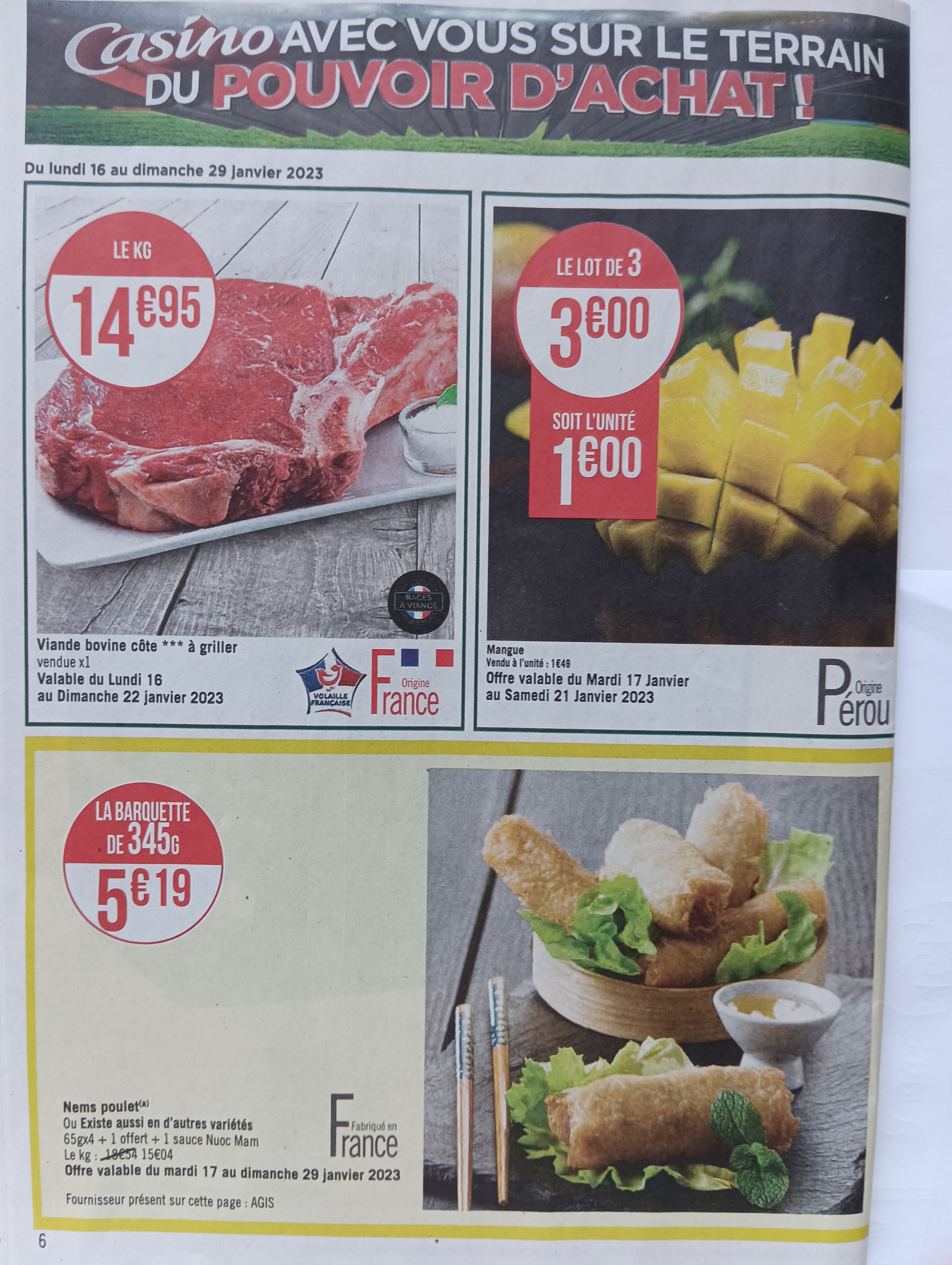 « Casino AVEC VOUS SUR LE TERRAIN DU POUVOIR D’ACHAT » Peut-être mais Pas au Casino de Marly le Roi….. Des beaux catalogues distribués à Marly le Roi, celui dont je vais parler date du Lundi 16 Janvier au Dimanche 29 Janvier2023, et vous y trouviez page 6 Des Mangues vendues à l’unité à 1.49 Eur en Promotion les 3 à 3 Eur soit 1 Eur la Mangue, une offre irrésistible ! Qui me fait venir au magasin … et là…… surprise, les mangues sont en promo mais pas au prix du catalogue : => 1.99 Eur à l’unité au lieu de 1.49 Eur…. => Promo 2 mangues à 3 Eur Donc avec la Promo « Marly le Roi » on a le Prix NON soldé du Catalogue pour résumer. J’ai photographié l’affiche en rayon car j’ai senti venir l’arnaque…. Et arrivée à la caisse, la caissière me dit : Non, mais les prix du Catalogue, ont les « adaptent » à Marly le Roi…. « Nous ce qui compte c’est le prix affiché en rayon…. Le prix du catalogue on s’en moque ! »….. C’est scandaleux, On nous prend pour des pigeons, je ne fais pas parti d’une association de consommateur mais il y a vraiment un problème, J’aurai dû demander à recevoir les explications du directeur ou d’un responsable. Consommateur et client du Casino de Marly le Roi vous voilà averti ! Le Catalogue vous pouvez le jeter directement à la poubelle… car « les prix du catalogue, ils s’en moquent !! »…