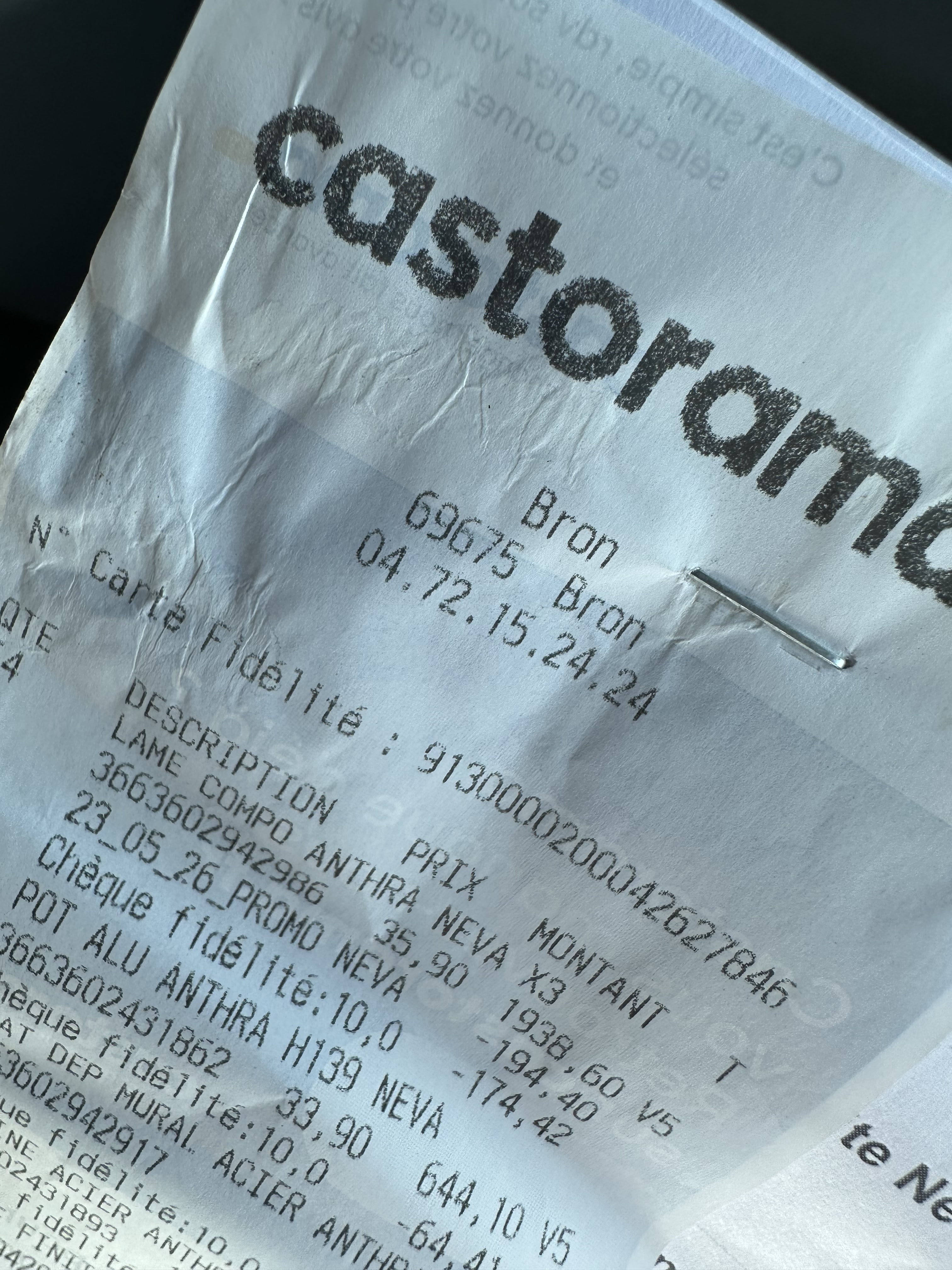 Je mettrai bien 5 étoiles car chez casto il y a tout ce qu'il faut mais franchement passer plus de temps en caisse pour éditer une facture qu'en faisant la queue. Qui utilse encore des impressions matricielles ??? Archaïque !!!