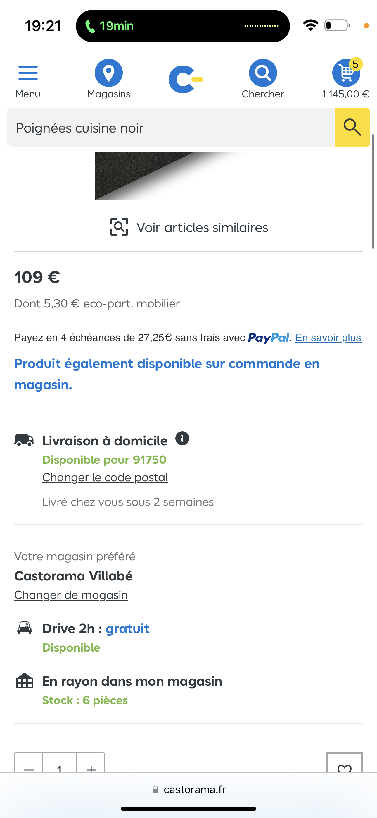 Bonjour, La démarche que vous puissiez entreprendre, ne changera rien. L'expérience Drive m'a refroid et je déconseille. Bonjour, Le service Drive du magasin Castorama situé au centre commercial de Villabé, je ne le recommande pas. J'ai passé une commande pas plus tard que hier et pour pouvoir récupérer les 2 colis le lendemain. En arrivant au parking dédié au retrait de commande, patientant, j'ai contacté au bout de quelques minutes le service Drive pour informer de ma présence, l'interlocuteur m'explique que la commande a été annulée pour cause d'absence d'emballage pour le premier colis et indisponibilité pour le deuxième. C'est une qualité de service déplorable ! Dites-moi de telles problématiques de ce genre vous en rencontrer souvent ? 😡