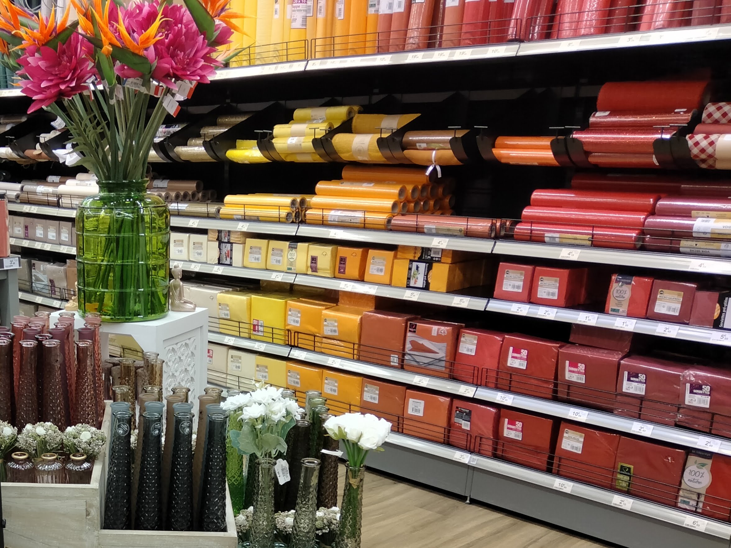 Magasin bien rangé et propre, on peut trouver de jolies décorations sans se ruiner. Le personnel par contre devrait apprendre à être de vrais commerçants ! Un bonjour est toujours agréable même dans les rayons !