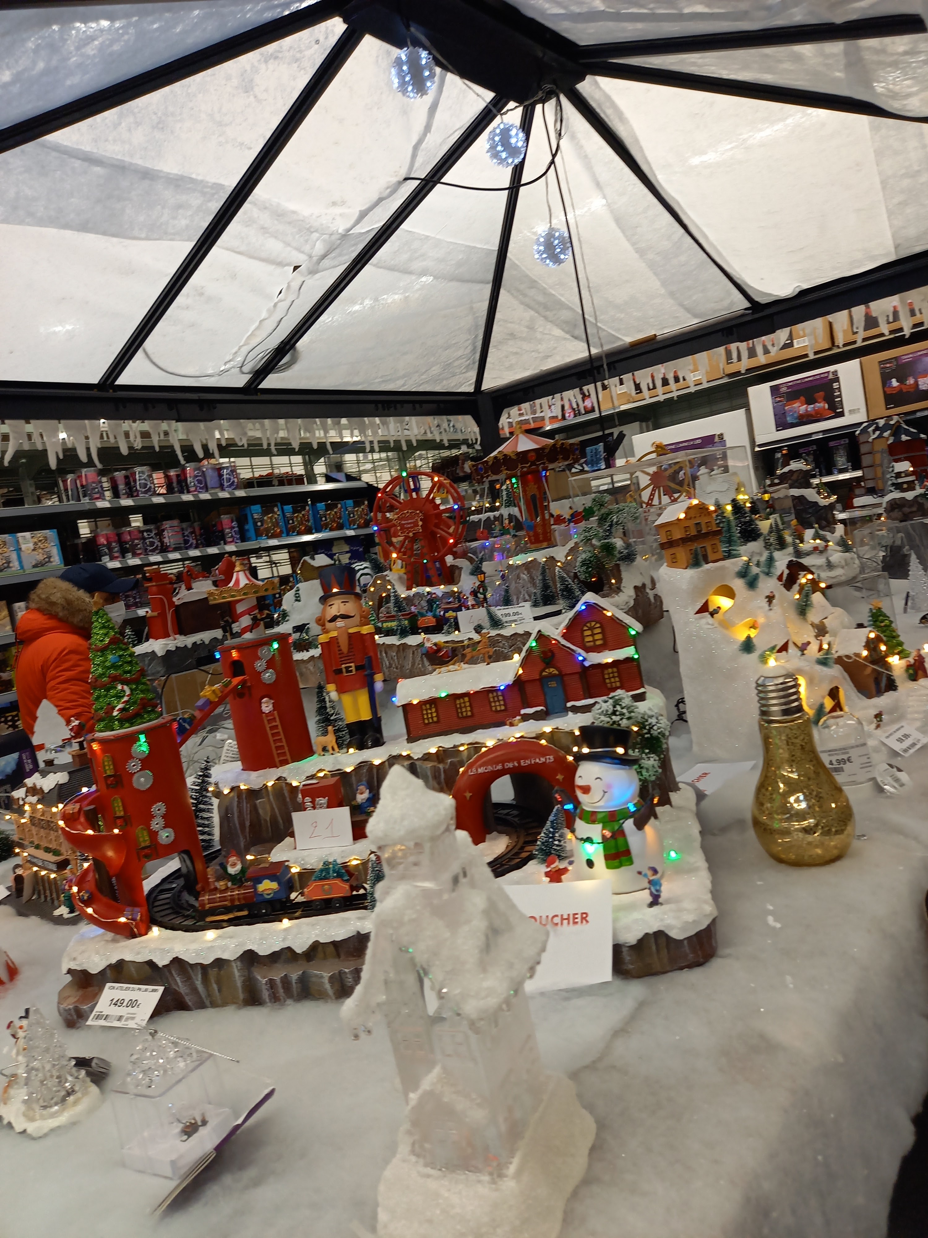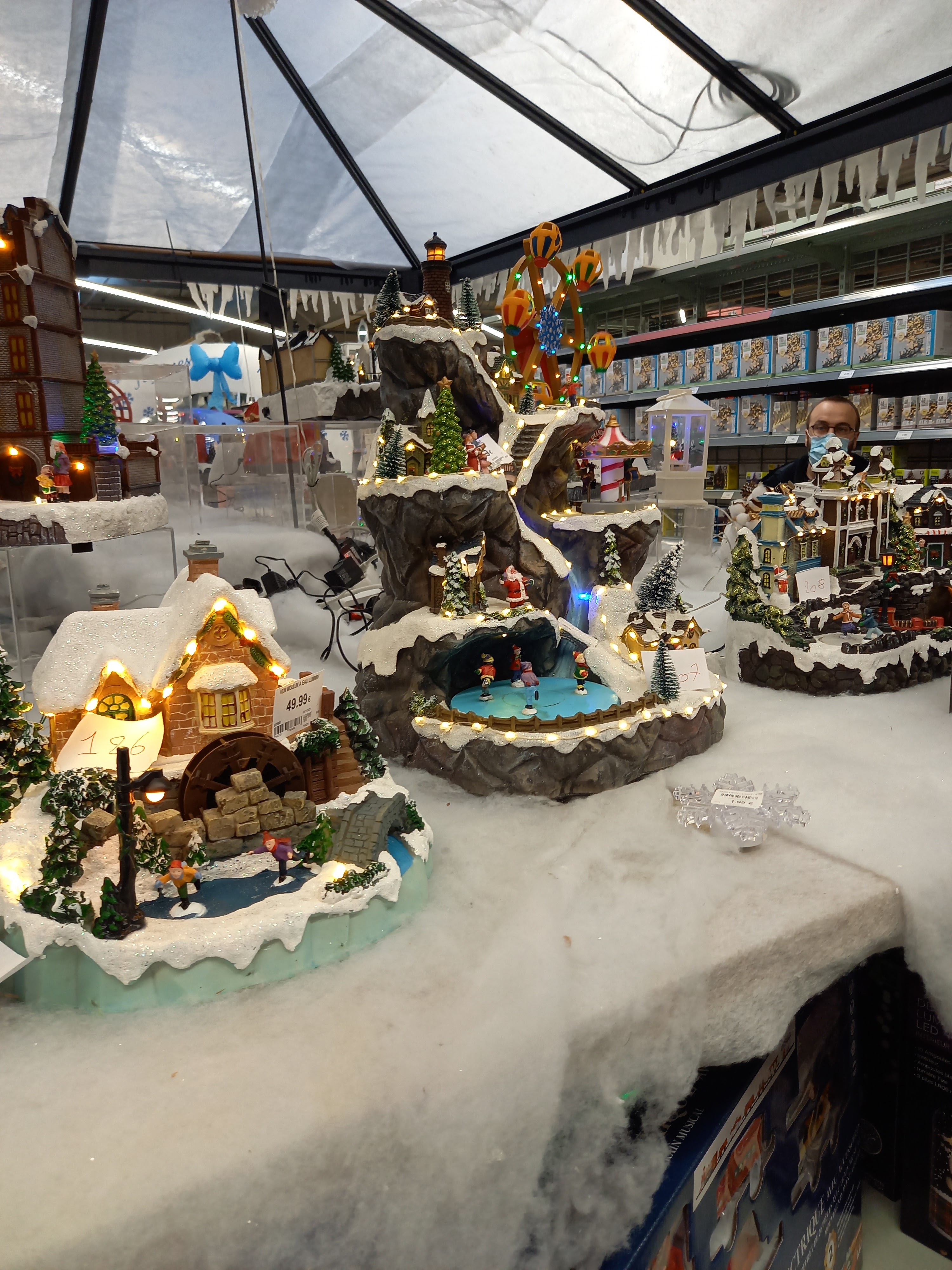 Le paradis pour les toutes âges. Personnels serviables, on voit le sourire derrière le masque. Instalaciones de decoración Noël en route.