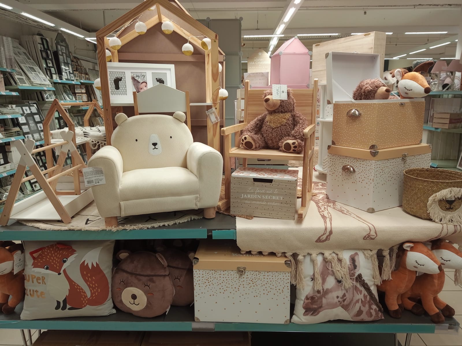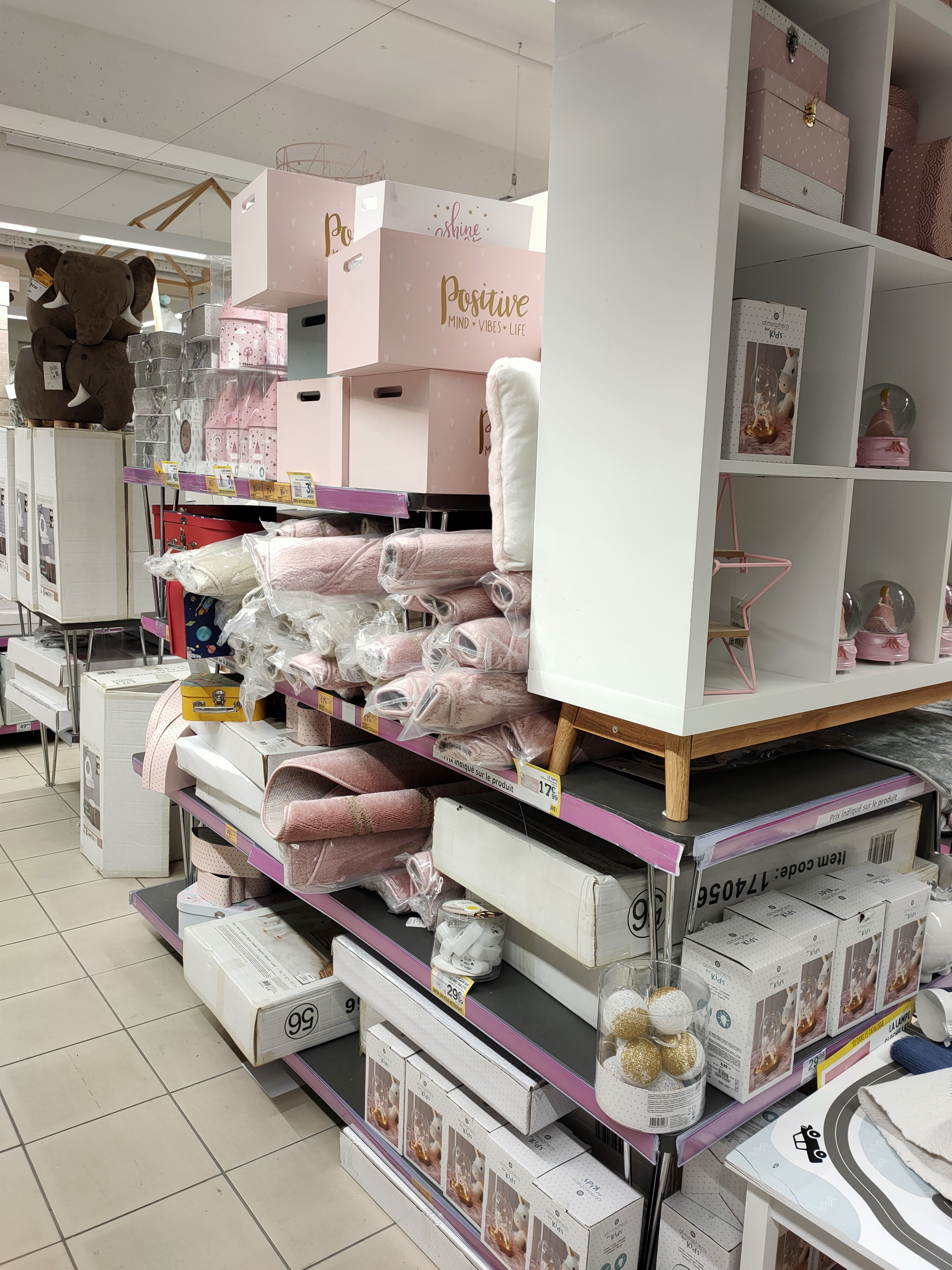 Beaucoup d’éléments de décoration, mais gros bémol sur l’ameublement. Nous avons fait 40 mins de voiture uniquement pour voir les meubles et grosse déception. Peu de choix, les seuls meubles montés ne donnent vraiment pas une impression de qualité. Soit ils sont bancales, aux tiroirs scotchés, soit ils ne sont pas mis en valeur.