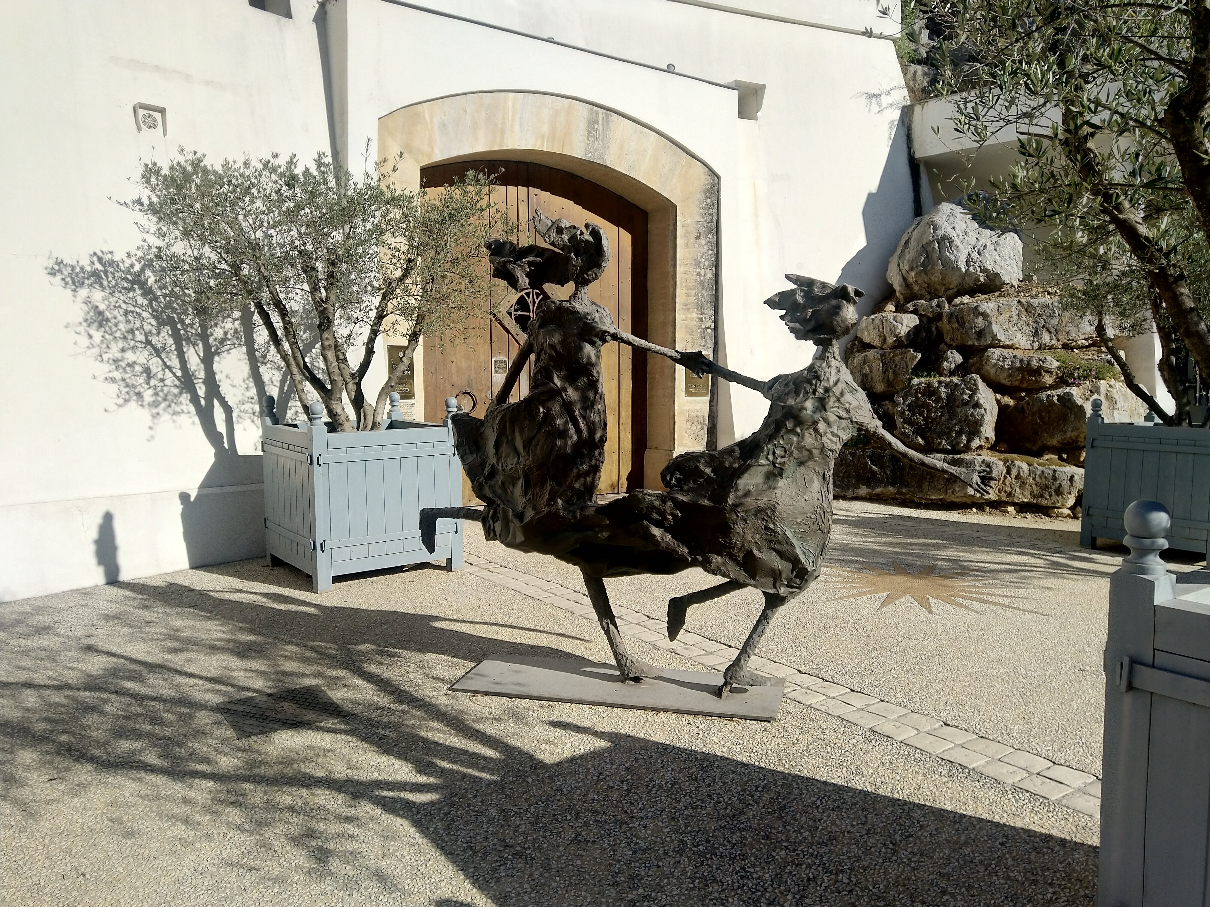 Après avoir suivi de nombreux détours depuis la D99 (attention aux panneaux !), nous arrivons à un édifice imposant au pied des Alpilles. Nous avons été chaleureusement accueillis, offerts de merveilleuses dégustations (dégustations de certains de leurs vins) et amenés dans cette étonnante cathédrale construite dans la montagne et bordée d'immenses fûts de vin en chêne. Le monsieur a expliqué leurs processus (beaucoup mieux compris par ma fille qui est la connaisseuse en vin de la famille) pendant que je prenais quelques photos avec plaisir. Nous sommes repartis avec plusieurs bouteilles et avons dégusté une merveilleuse bouteille de leur rose sur notre terrasse ce soir-là. C'était l'un de nos domaines viticoles provençaux préférés que nous avons visités.