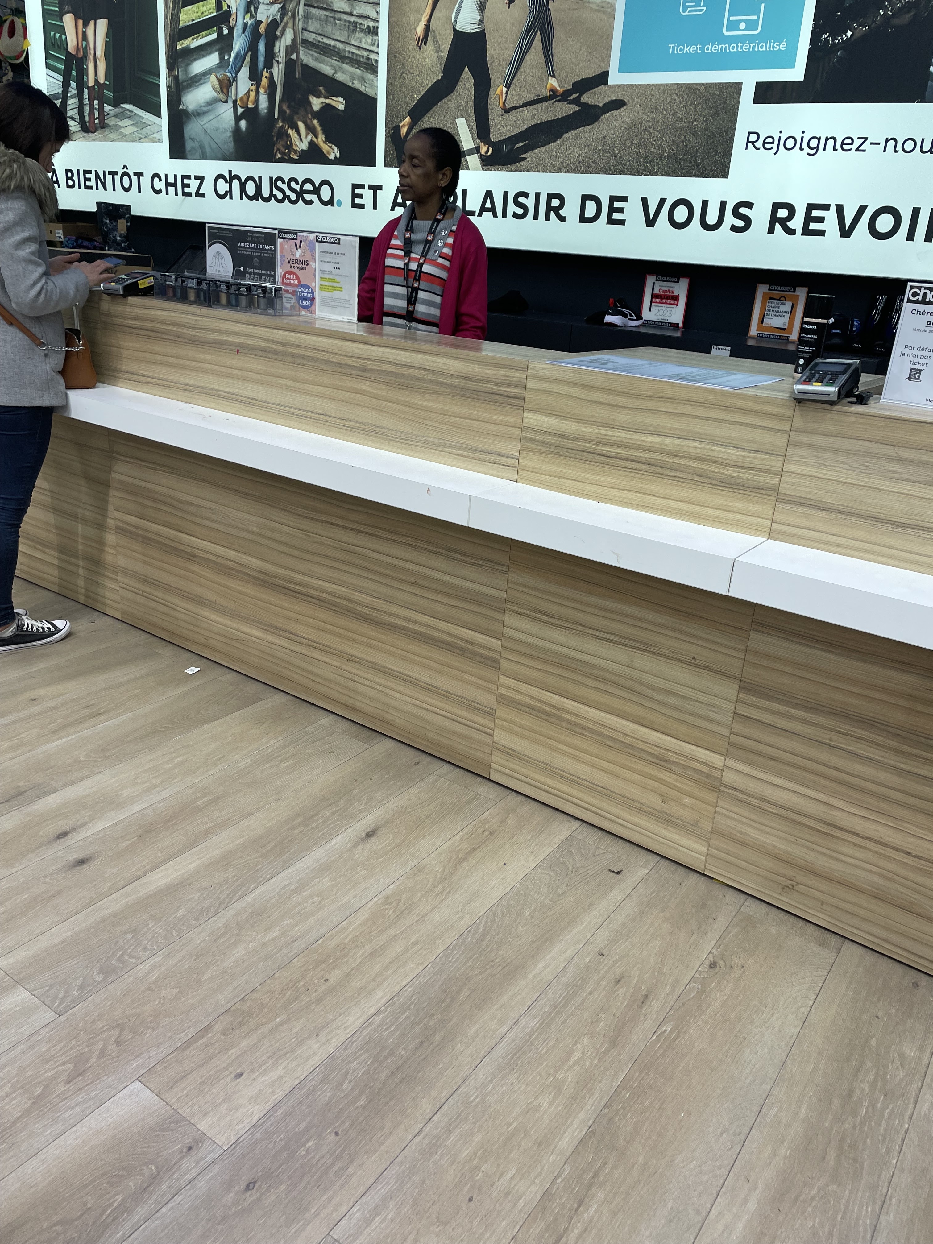 Nous sommes venus acheter des chaussures pour nos enfants aujourd’hui le magasin est dans un état catastrophique ni fait ni à faire. Pas de bonjour en rentrant pas de bonjour à l’accueil pas de beaux jours en payant rien à part un monsieur qui fait la gueule. Nous étions avec nos trois enfants. Ce monsieur n’a pas du tout été aimable. En nous encaissant. Il a même râler après notde un an et demi, car elle touchait un produit sur le comptoir, alors qu’elle était dans nos bras. Je pense que certaines personnes ont oublié le concept de commerçants. Également j’ai une carte de fidélité. J’ai donné mon nom. Ce monsieur ne m’a pas retrouvé et a été désagréable en me demandant mon code postal. Il ne me trouvait toujours pas il a essayé par numéro de téléphone et la magie il m’a trouvé je n’avais pas changé de nom de famille incroyable !!! nous avons acheté les chaussures uniquement parce que nous en avions besoin mais il est clair que nous ne reviendrons pas dans ce magasin l’autre Chausséa n’ai pas franchement mieux quel dommage il serait bon de revoir le personnel ainsi que l’agencement de votre magasin qui fait plus dépotoir que boutique. Nouvelle visite ce jour 16/11/2023 Vous avez raison je reviens une seconde fois ce jour, un jeune homme à l’entrée, incapable de me renseigner et de dire bonjour par la même occasion je lui demande une paire de chaussures. Il me dit qu’il vient de débuter. D’aller voir en caisse, je tombe sur Fatoumata qui me dit les bottes c’est là-bas je sais je suis une cliente habituelle je ne les ai pas trouvé c’est pour ça que je viens voir cette dame. Elle ne veut pas m’aider clairement. Je lui dis donc que je vais me débrouiller toute seule et je perds un quart d’heure à trouver la paire de chaussures qui était rangé dans une mauvaise boîte est toujours personne pour m’aider. je réitère donc vos commentaires et retire même encore une étoile. Franchement je ne sais pas qui est responsable de cette boutique mais il y a du tri affaire. Y’a des gens qui demande du travail et qui n’en ont pas et qui serait heureux d’être à la place de vos employés actuel, bon courage en tout cas se chaussea là c’est fini pour moi