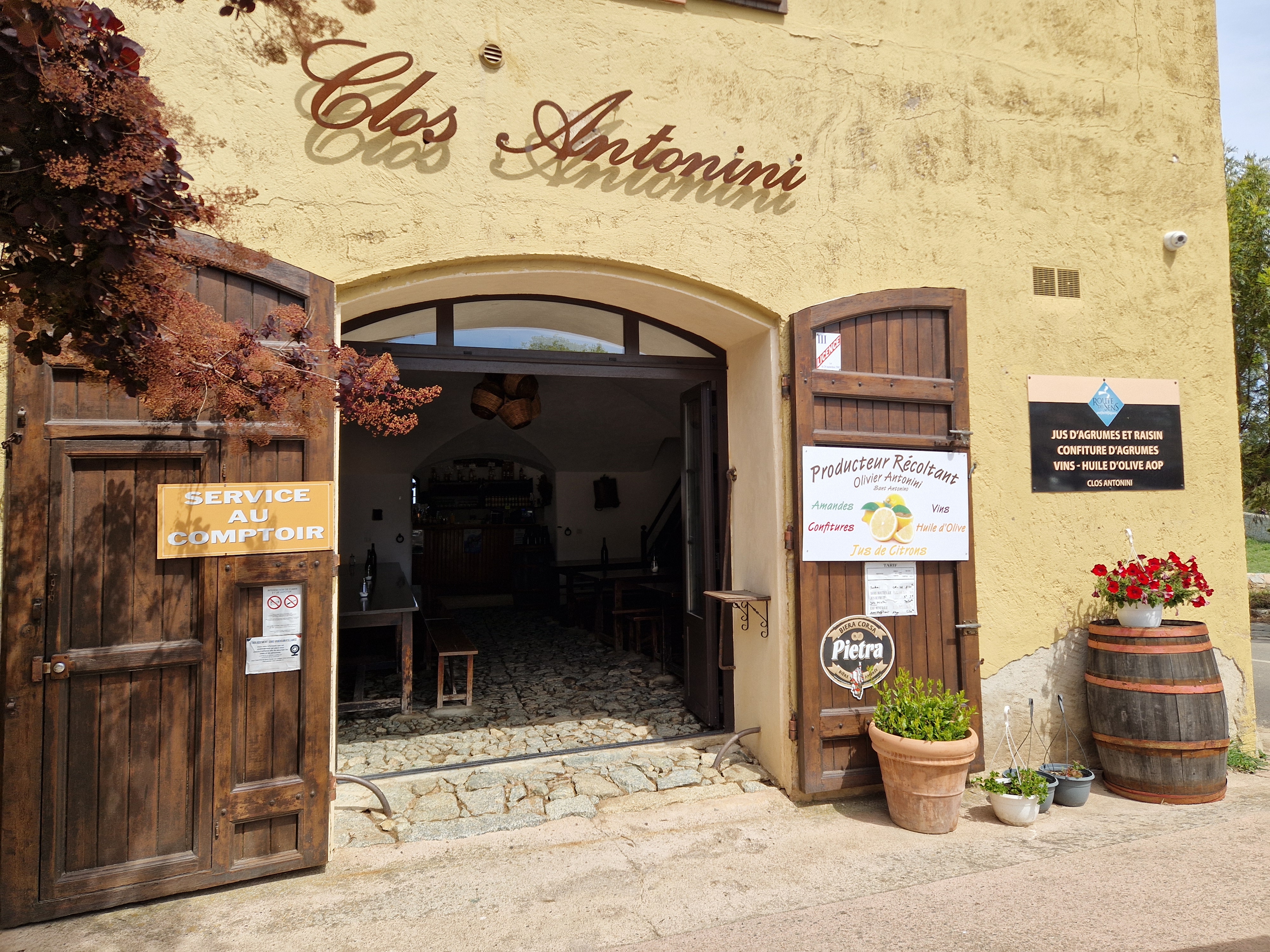 C'est mon endroit préféré en Corse - je connais cet endroit depuis près de 20 ans maintenant. C'est une entreprise familiale et dirigée par Olivier, le fils des Antonini - toujours sympathique, toujours souriant, toujours prêt à répondre à toutes les questions et à raconter comment tout a commencé : tout a commencé avec 100 citronniers plantés sur une propriété et dans le en attendant, vous obtenez le meilleur jus de citron, mais aussi d'orange et en septembre - octobre le jus de raisin le plus sucré. Ils produisent leur propre vin et si vous avez de la chance, vous obtiendrez même l'une des rares bouteilles de la meilleure huile d'olive naturelle de la famille. Je connaissais déjà l'endroit lorsque la mère d'Olivier, Monique, était là tous les jours - nous y avions tellement de bons pique-niques (apportant nos propres Copa et Lonzu corses, des fromages différents, de la baguette et des olives et acheter les boissons d'Olivier) ! Parfois, je rêve encore de cet endroit et j'espère que beaucoup de gens auront l'occasion de profiter de ce que j'ai pu apprécier des centaines de fois - merci d'avoir créé un endroit aussi naturel et étonnant