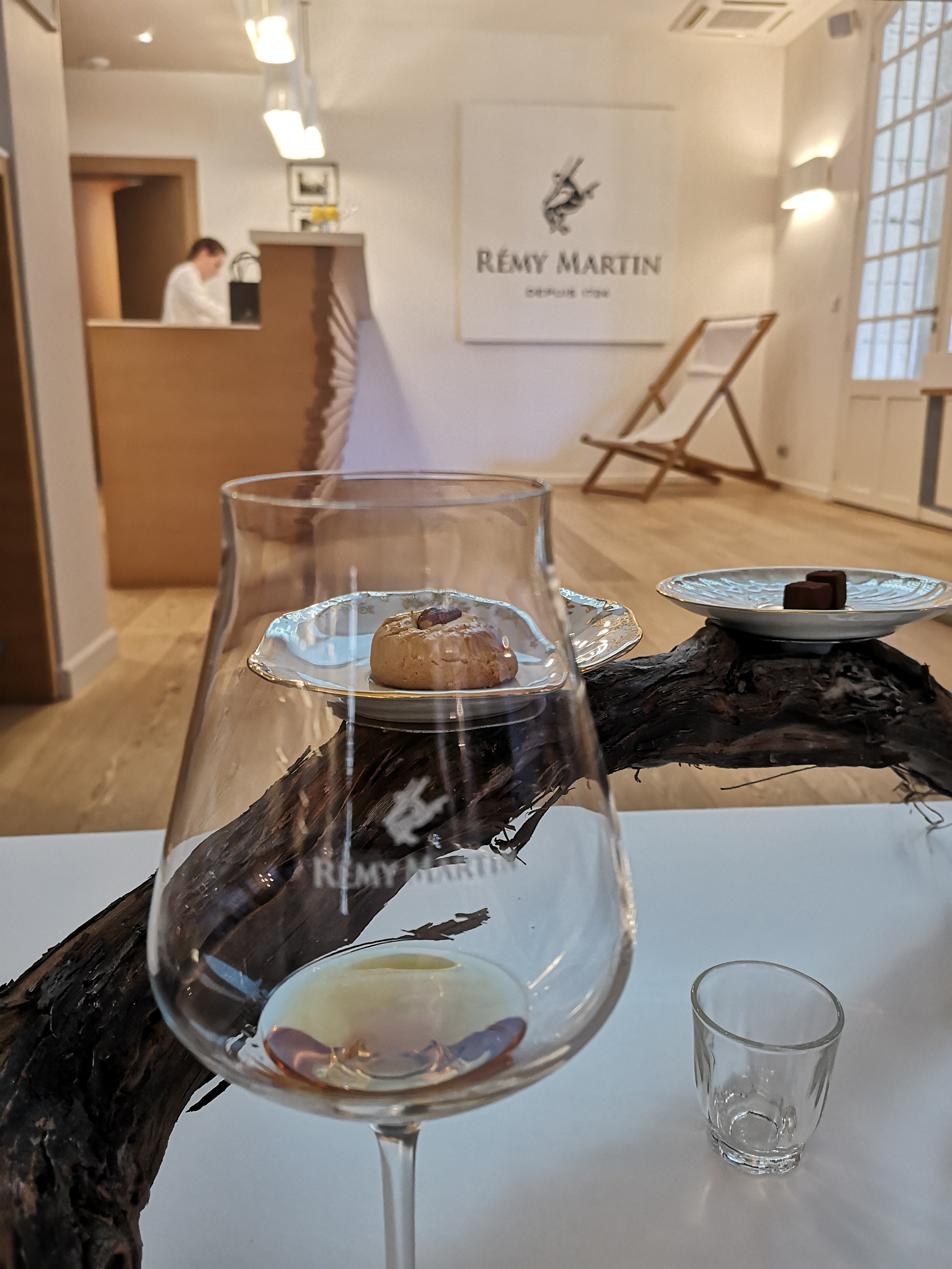 Accueil chaleureux par le personnel de Rémy Martin à la boutique. Un espace magnifique et élégant. Dans l’attente de leur célébration de 300 ans en 2024.