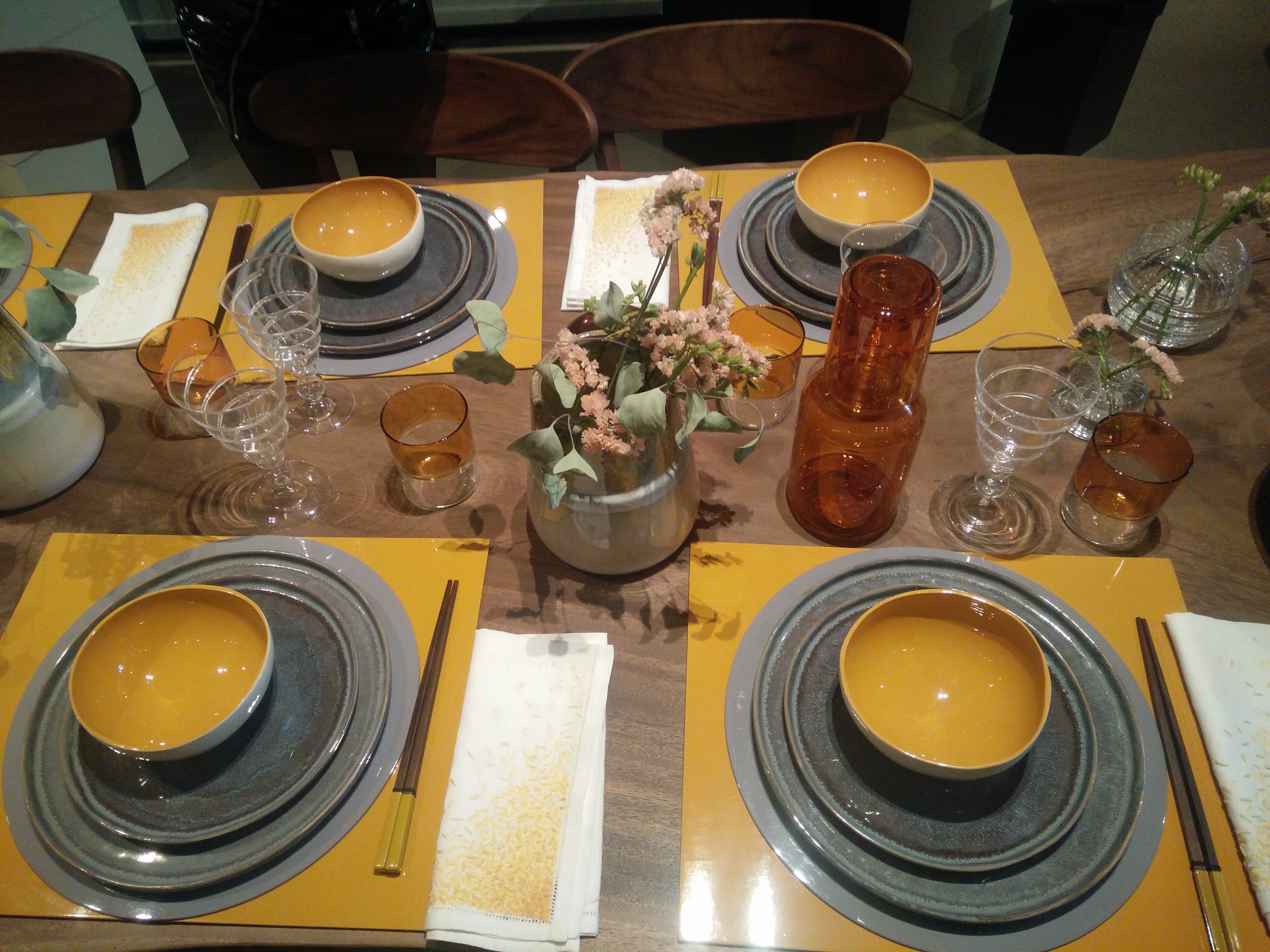 Très belle sélection et présentation de vaisselle et mobilier.