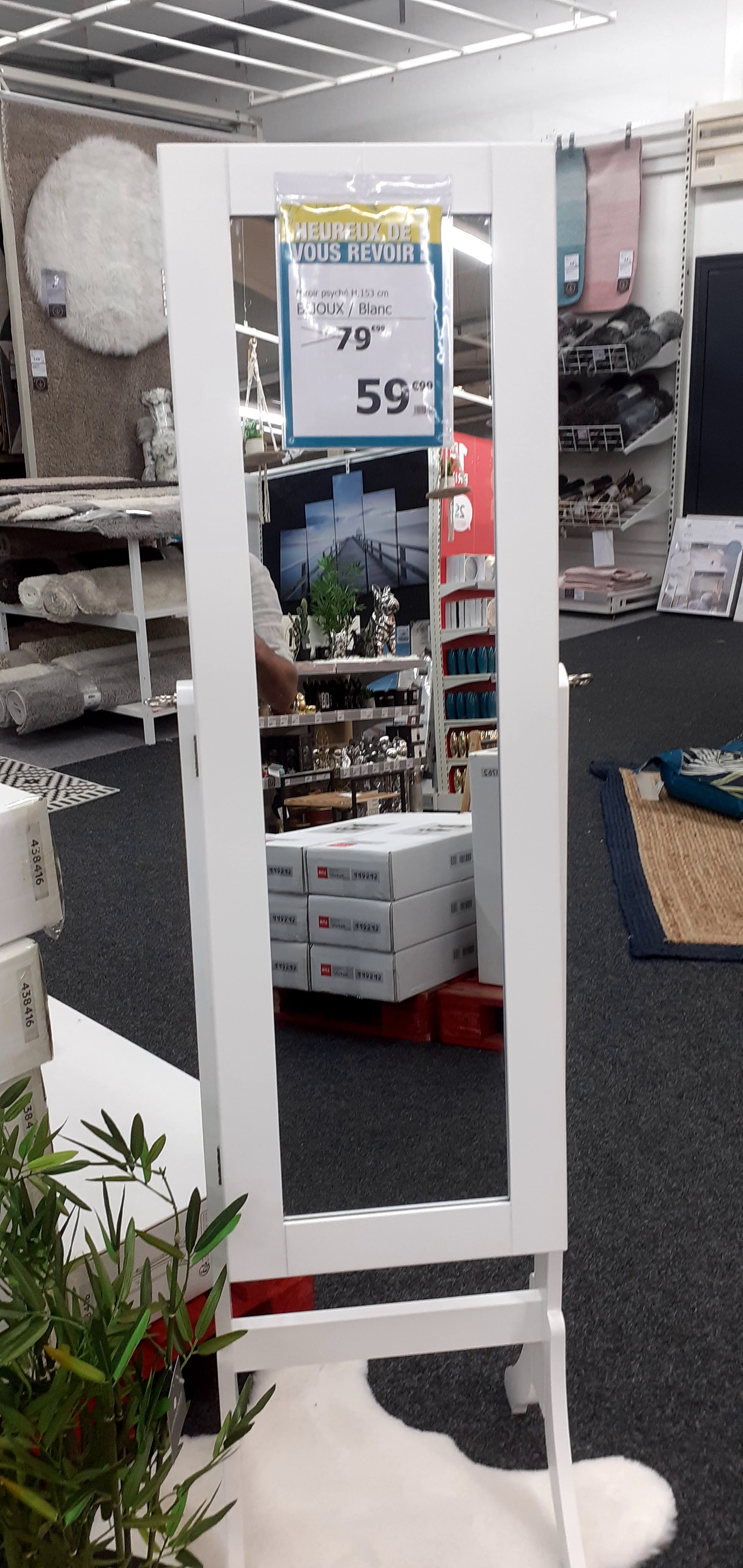 Nous avons dû chercher après une vendeuse. Avons eu Le sentiment de déranger... a pris le numéro du bien numéro que j avais pris en photo. Une chose est sûre les vendeurs ne vont pas se fouler un doigt.. Seul point positif l accueil au Service retrait Marchandises. Et au mr qui m a ramené mon colis.