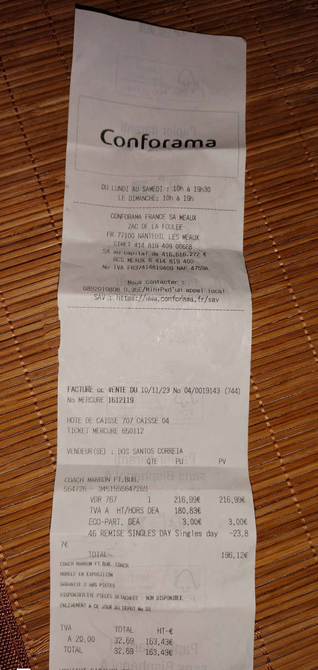 NUL NUL. Meuble acheté début janvier, le 11 février 2020 manque toujours une commande! Gros retard! Ne perdez surtout pas une facture d'achat pour retirer un meuble car il faut envoyé un courrier (absurde) pour qu'on vous réponds et attendre après plusieurs jours pour rectifier le tir.. 2020 Dématérialisation, ça devrait se faire en mode direct avec une pièce d identité!!!! Mettez vous à la page! Vous voyez pas la responsable, c est comme ca et pas autrement.. donc déçu! Allez ailleurs, moins d attente et moins chère... Internet c est mieux. ! A bon entendeur