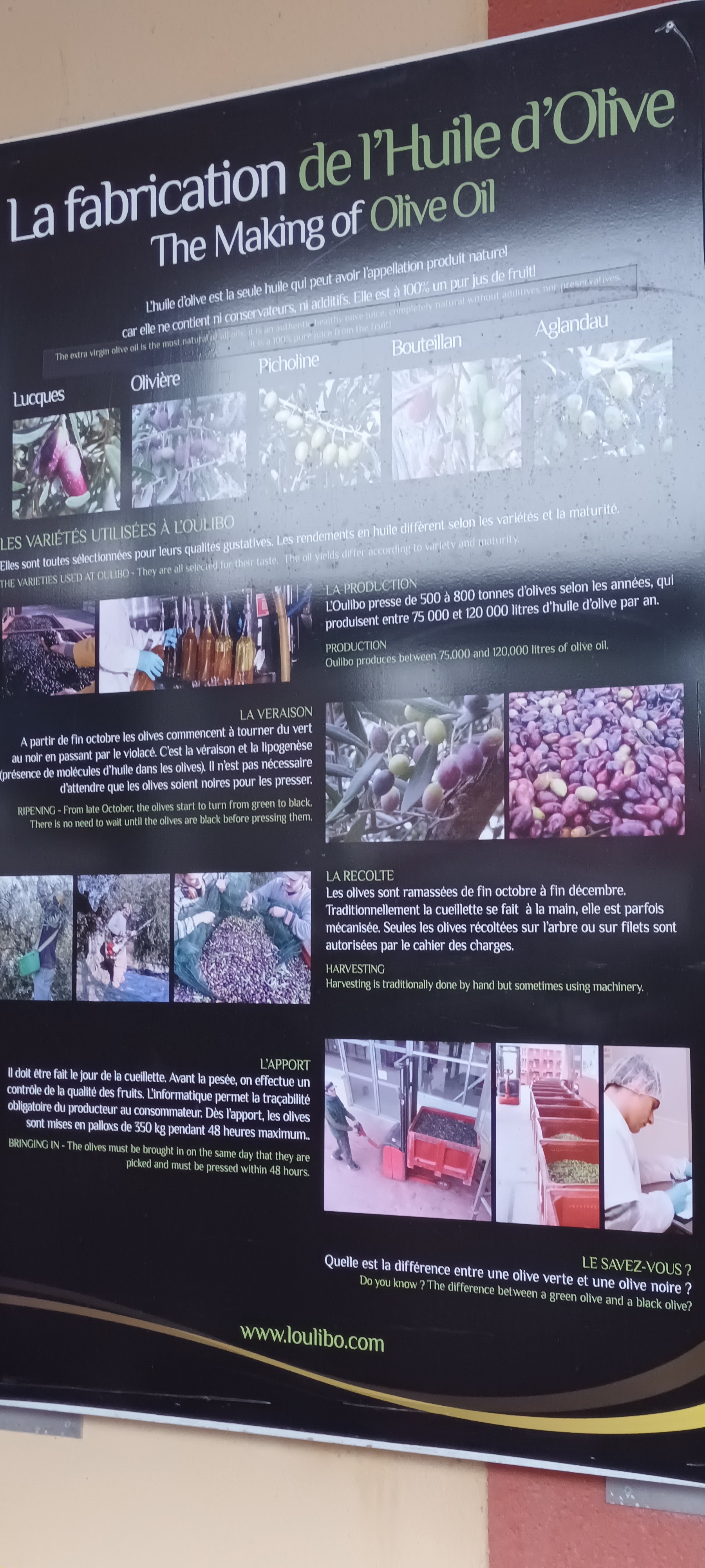 en 2022 ce sont les 80ans de l'Oulibo. petite visite sous les olivier, puis, du lieu de fabrication historique avec visionnage d'un film sur les olives du coin. dégustation d'huiles et d'olives à la fin et passage en boutique avec achat d'huiles, produits en bois d'olivier et divers articles locaux