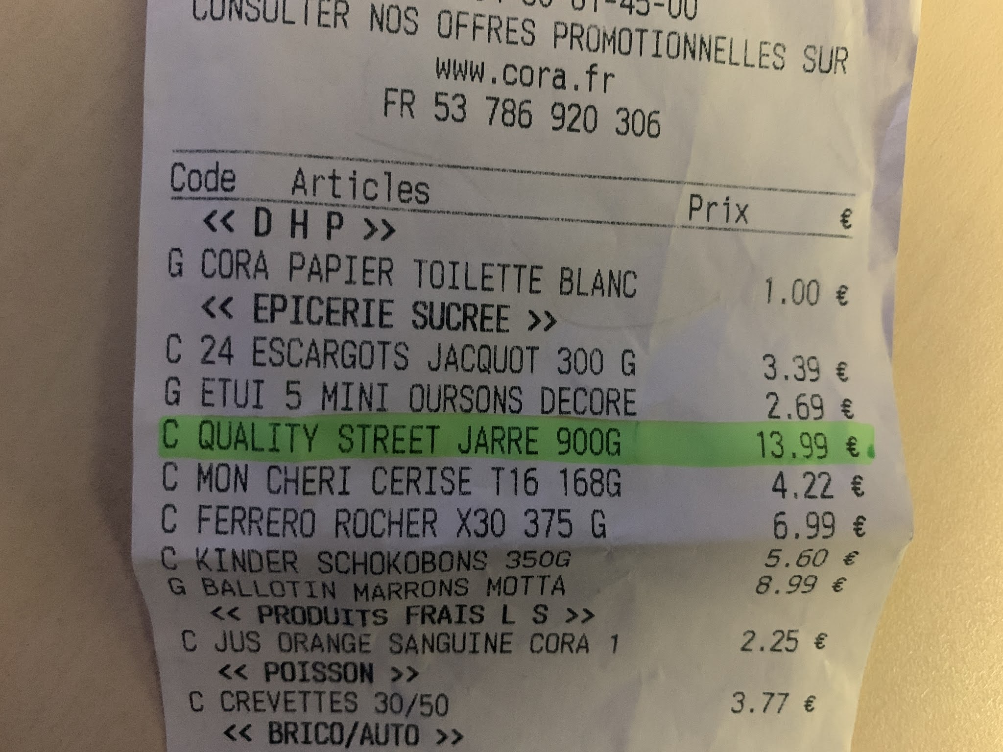 Je suis venu aujourd’hui chez Cora, pour les gros volumes, tout s’est très bien passé, très content de mes articles, attention tout de même au rendu de monnaie, une grosse faiblesse dans ce domaine.