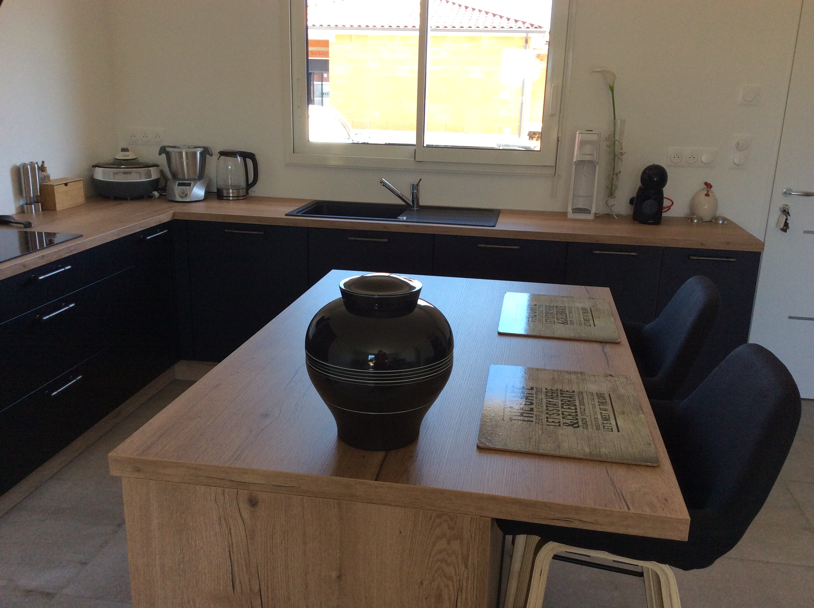 Ça y est, la cuisine est opérationnelle et nous ne nous privons pas d’utiliser toutes les fonctionnalités. En plus d’un électroménager de qualité (SMEG, BOSCH, ELICA), les éléments des meubles sont pratiques et robustes. Dans un espace relativement réduit, nous avons mieux accès à la vaisselle et aux accessoires que dans notre précédente cuisine. La pose a été réalisée par Bruno, un professionnel très qualifié qui a techniquement travaillé avec minutie sans négliger les détails qui importent dans le visuel. Toute notre satisfaction est aussi due à l’accompagnement du vendeur (Camille) de AVIVA Saint Orens qui a pris tout le temps lors de nombreuses visites pour nous permettre d’affiner nos choix de couleurs et d’agencements. L’accueil de toutes les personnes de l’équipe de l’agence de Saint Orens est excellent et chacune de nos questions a eu une réponse. Nous n’allions pas chez AVIVA par hasard car deux de nos enfants utilisent chez eux une cuisine AVIVA et nous savions, par leurs expériences, la qualité des éléments et plan de travail.