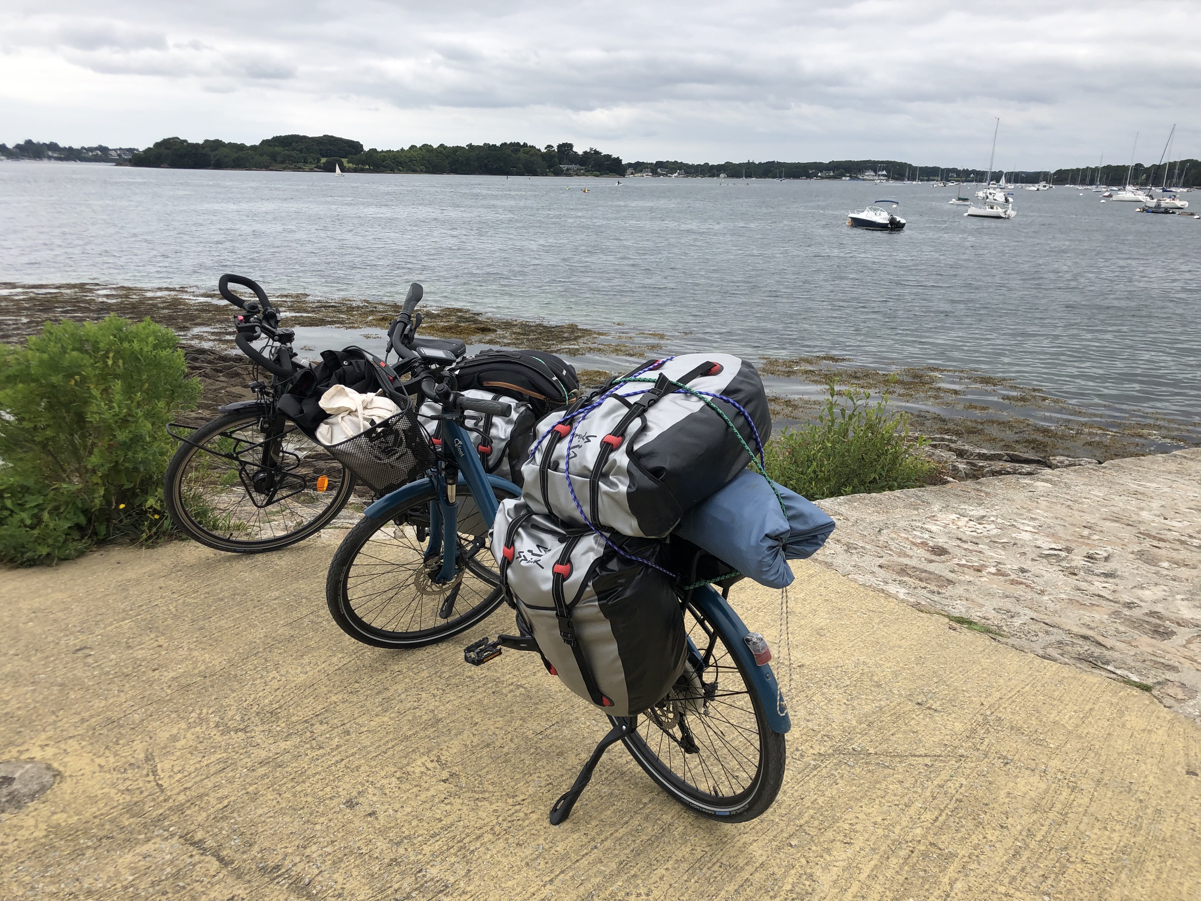Nous avons loué 2 vélos pendant 2 semaines pour faire le tour du golfe du Morbihan en itinérant, c’était top ! Un VAE pour Mme et un vélo trekking Gitane pour Mr, du très bon matériel. Nous nous sommes fait livrer les vélos à notre arrivée à la gare de Vannes et restitution idem, c’était parfait. Puis étapes au Bono, à Locmariaquer, et à Sarzeau, pour profiter pendant 5 jours de la presqu’île de Rhuys. Nous avons aussi loué 2 paires de sacoches, que nous avons malheureusement cassé au bout d’une semaine. Le loueur est venu nous dépanner, sans surcoût. Ce qui nous a permis de finir notre boucle du golfe dans les meilleures conditions. Bref une super expérience de vacances à vélo autour du golfe du Morbihan !