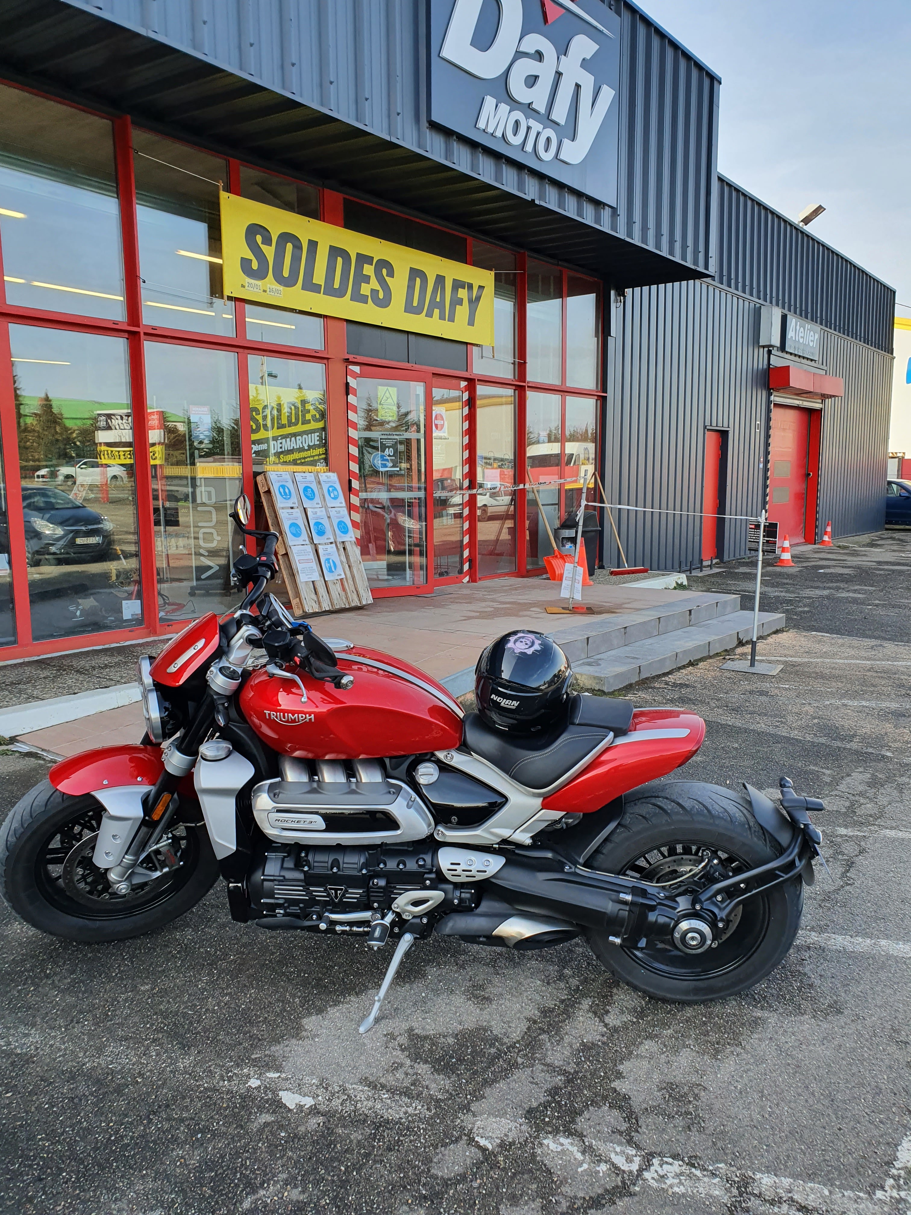 Catastrophe...... J ai acheté un casque a 450€ imitation carbone car il faut pas rêver.. du vrai carbone a ce prix ça existe pas ! J ai un défaut sur l aérateur gauche au niveau de l oreille , le casque est inutilisable !!!!! J ai un bruit aigu en plein dans l oreille dès 50km/h. Retour au magasin et je tombe sur une vendeuse pas motivée du tout ! Alors pour elle : c est un casque carbone destiné pour la piste le bruit est normal 😂😂 ( un casque a 450€ avec la double visière pour le soleil dedans ) Ensuite le bruit est normal car c est a gauche coter route 😶😶😶😶 Du coup mettez des bouchons d oreilles et basta 😶 Qu elle change de métier honnêtement ! Dans mon entourage on est de plus en plus a fuir Dafy.. dommage .