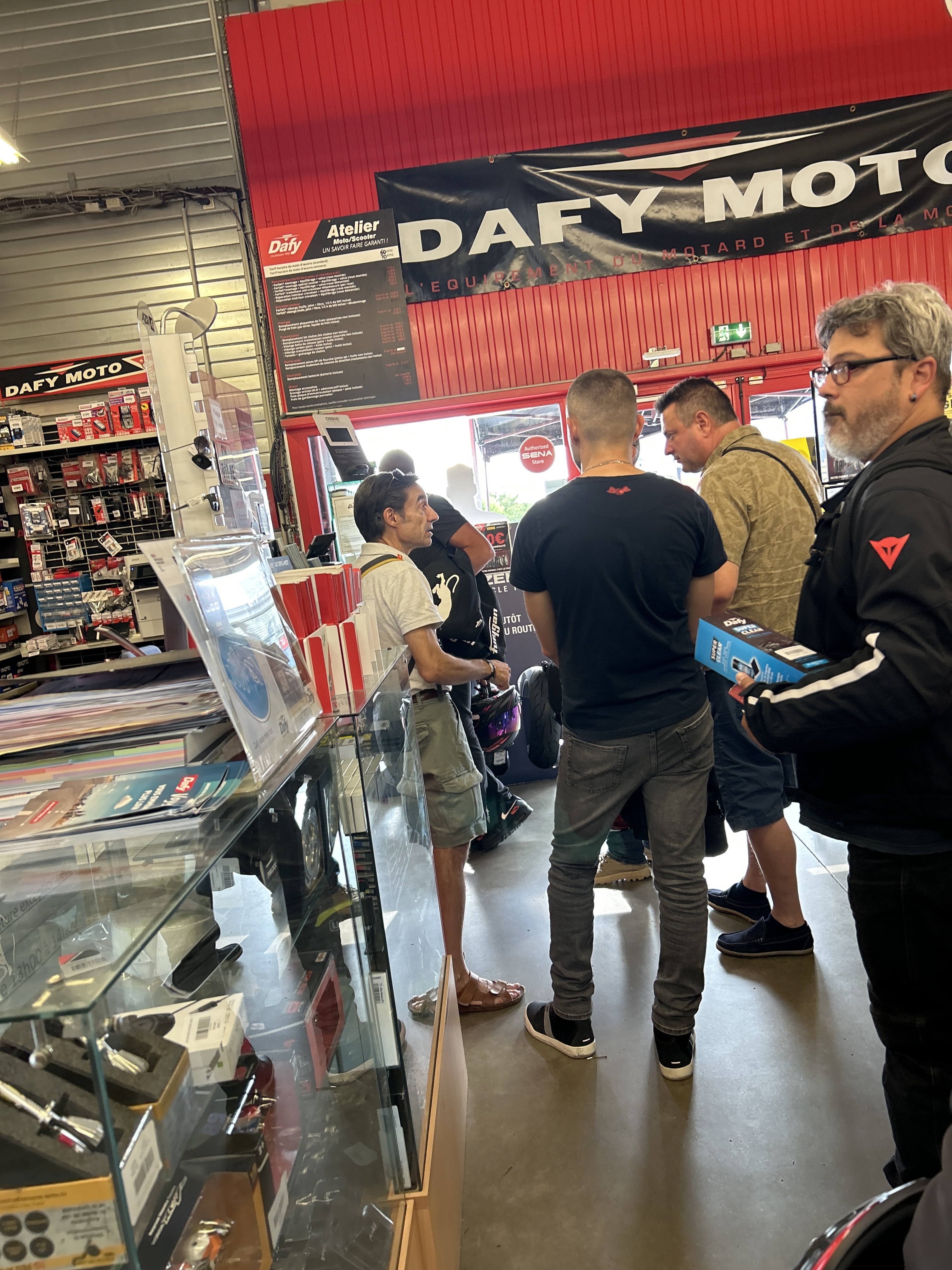 Quelle lenteur en caisse c'est incroyable, 4 clients devant moi et en 15 minutes seulement 2 sont passés, je suis parti sans les produits que j'avais choisi, moi qui pensais rapidement acheter quelques articles entre deux rendez-vous, j'ai vite déchanté. On dirait que les commandes pour des pièces ou accessoires se font en caisse donc je vous laisse imaginer le temps que ça prend, il faudrait un comptoir dédié à ça, non à la place il y a deux personnes derrière un même guichet dont une qui ne sert à rien à part brasser du vent visiblement. Quand on voit les commentaires et les réponses bateaux et identiques qui sont faites on voit clairement qu'on se fiche de votre avis visiblement. Bref, passez votre chemin, il y a bien d'autres magasin plus accueillants et compétents que Dafy Moto Dardilly