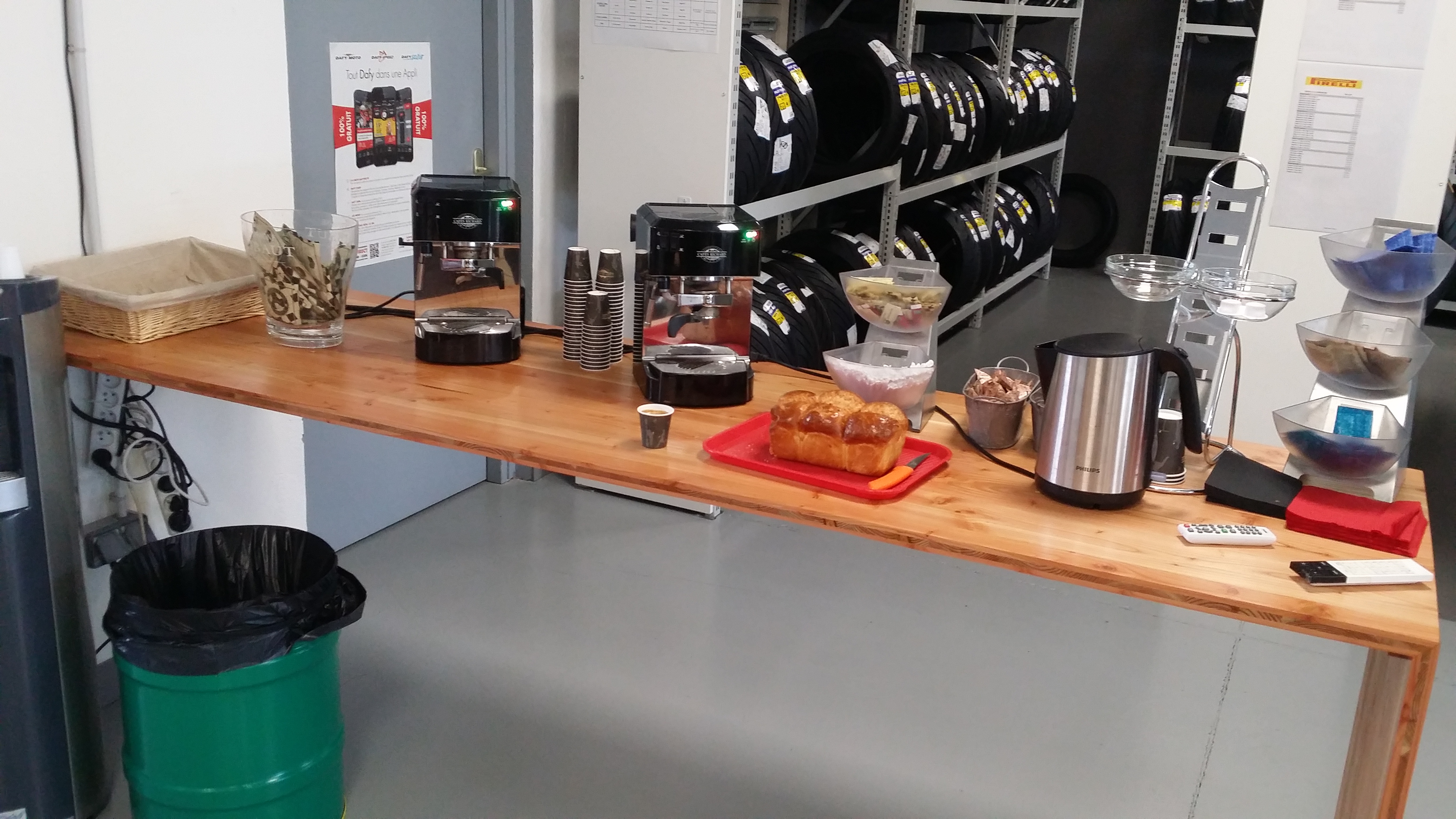 Le vendeur est cool ma femme et moi avons fait quelques achats et changer un pneu j ai attendu mais il y a de quoi s occupé (boire un café, bavé sur les moto , les équipements et regarder eurosport c est cool :) )