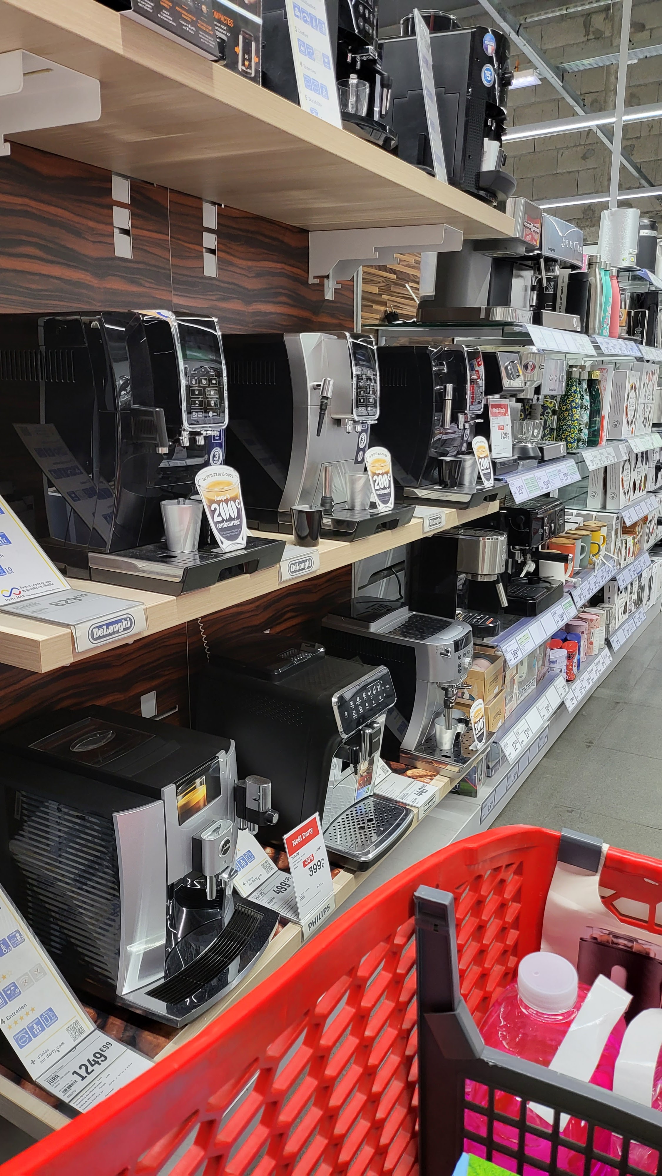 Achète la machine krups rouge en promo avec les 3 pack de dosette, demande a une conseillère si c’est bien une machine automatique qui arrête l'écoulement automatique. Elle m’affirme que oui. Je rentre, l’essaye, et la surprise lorsque la machine n’est pas du tout automatique. Je tente d’appeler le magasin 3 fois : numéro payant évidemment, sachant qu’ils n’on jamais décroché alors que je suis rester 10 minutes en attente a chaque fois, imaginer le prix, surtout que 30 minutes plus tôt au magasin il n’y avait aucun client donc ils pouvaient largement répondre aux appels. Bref, pas d’autres choix que de retourner au magasin alors qu’il n’est pas à côté.