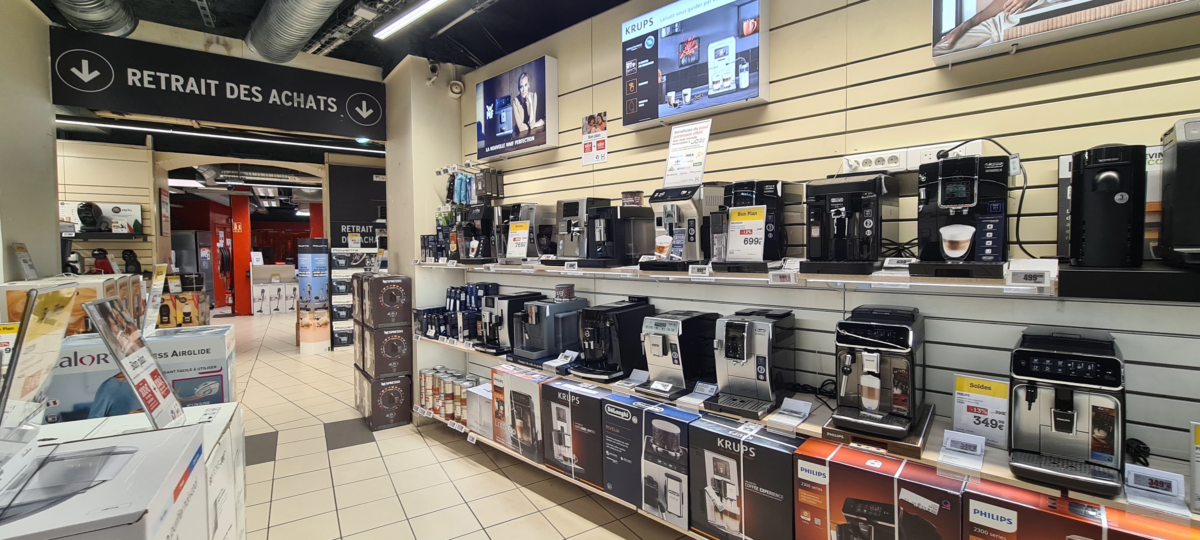 Magasin bien achalandé, on y trouve pratiquement tout de l'électro ménager à la high-tech dernier cri, mais pour une crépière pas possible d'avoir un emballage correct. On peut se poser des questions quand à l'état de l'ustensile. Personnel pas tellement disponible, beaucoup se promène et si vous voulez leur demander un article ils vous répondent qu'ils ne sont pas concernés par cet article. On perd beaucoup de temps à attendre un conseiller.
