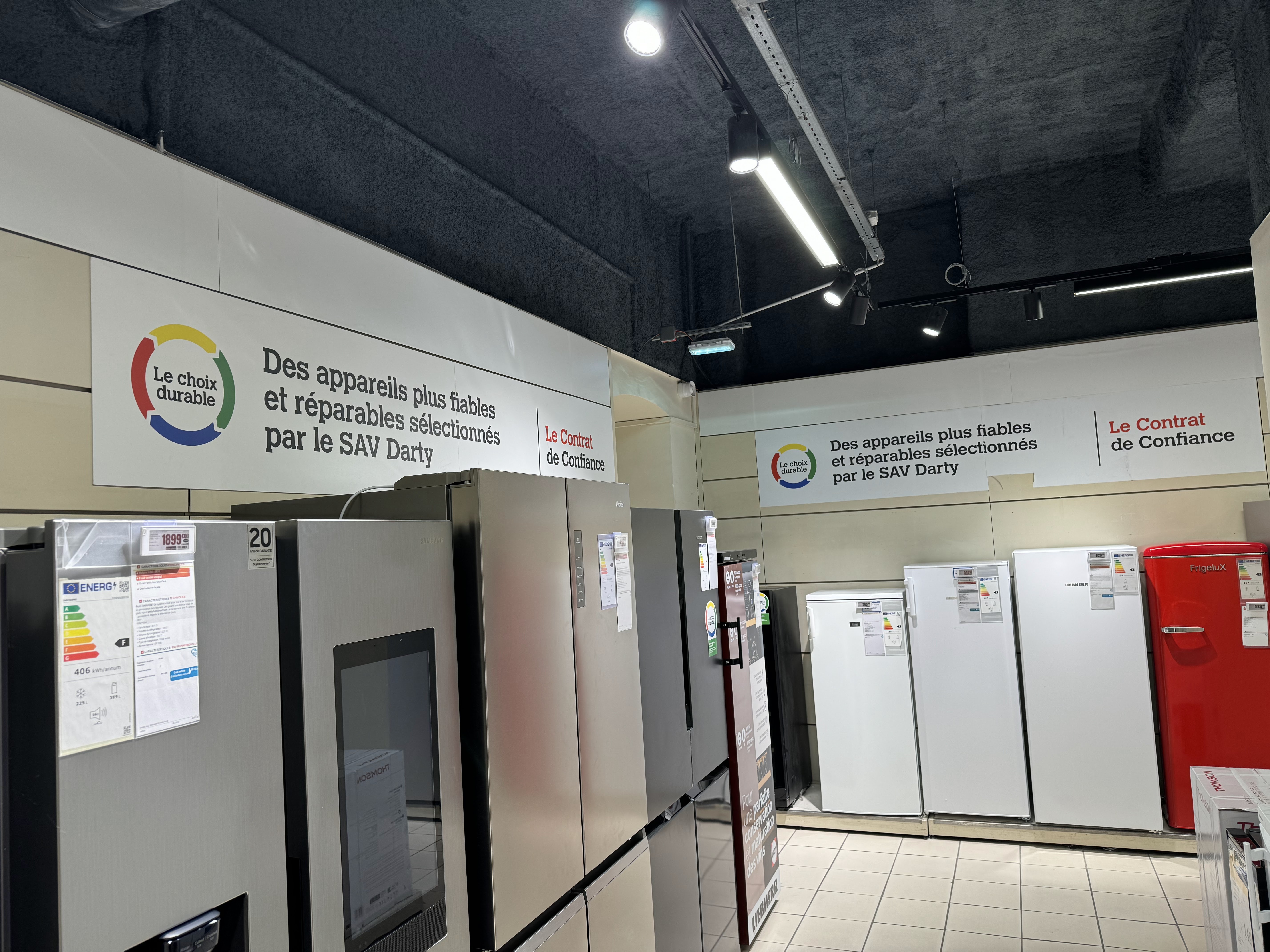 Ce magasin est une catastrophe. Trois fois que j'essaie d'aller acheter un frigo à encastrer, et à chaque fois, je tombe sur des vendeurs qui sont d'un jeanfoutisme rare... La seule réponse que j'ai eu c'est il y en a un à 700 qui fait du givre dans la partie congélateur et un autre à 1000 Ok, puis-le les voir? non il faut le acheter sur catalogue comment est l'intérieur du frigo? Aucune idée. Bref, jamais vu des gens aussi blasés de vendre des frigo à 1000 euros.... Ils ont un sacré poil dans la main, chez Darty... J'ai donc acheté mon frigo sur internet à 200 euros moins cher que celui que je visais. Bye Bye Darty