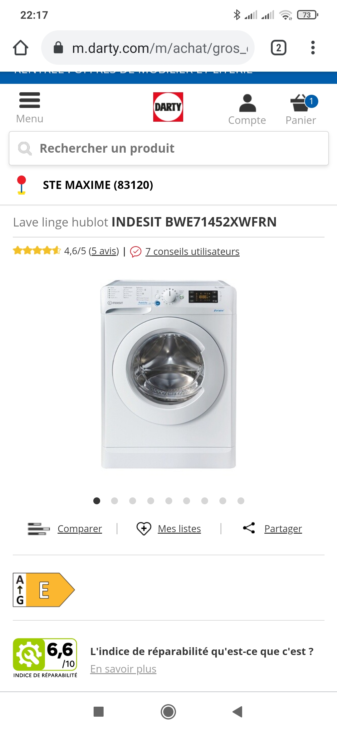 Article indiqué disponible sous 1 heure en magasin de Sainte maxime sur le site Internet. Arrivé sur place après le calvaire des bouchons le vendeur M indique qu' aucun stock de machine à laver est en magasin. Peut être que le magasin n y est pour rien mais il serait bon de faire une connexion cohérente avec les enseignes et le franchiseur. Cela ne retire en rien la sympathie certaine des équipes. Dommage, achat effectué à la concurrence.