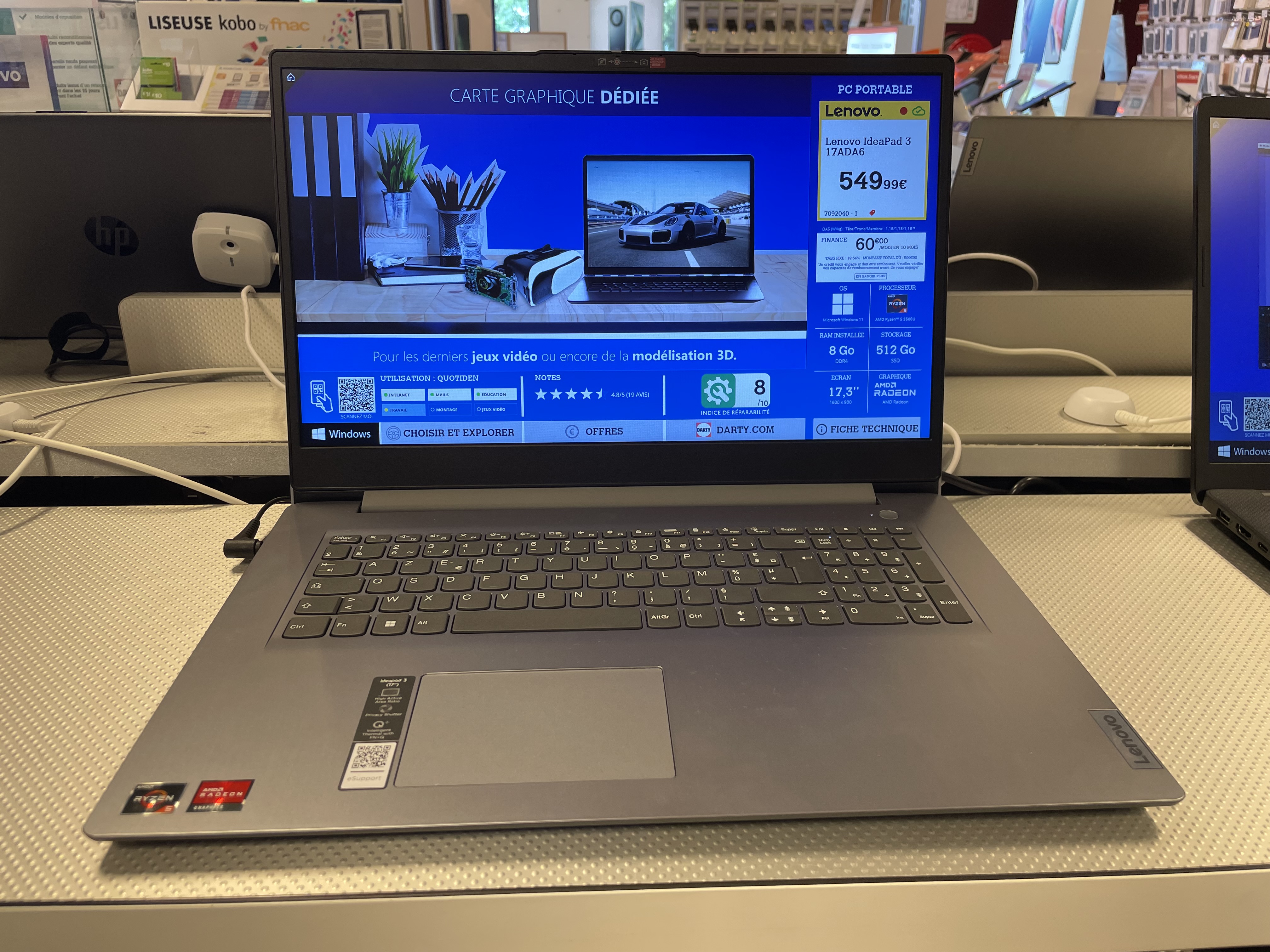 Lundi 19 juin 2023, nous achetons un lave-vaisselle au magasin Darty de Villabé. Convaincus par le vendeur, nous nous abonnons en outre à Darty Max. Avant de quitter le magasin, nous passons en revue le rayon ordinateurs. L'un deux, affiché à 549,99€, le Lenovo IdeaPad 3 17ADA6, m'intéresse et je le prends en photo avec sa fiche et son prix. Un vendeur s'approche, nous demande s'il peut nous renseigner. Je lui réponds que je viens de prendre en photo l'ordinateur Lenovo pour étudier ses caractéristiques à domicile et que nous reviendrons s'il convient. Le jeudi 22 juin, nous revenons chez Darty Villabé pour acheter cet ordinateur Lenovo. Stupeur : en 3 jours le prix s'est envolé, passant à 699 € !!! 150€ d'augmentation !!! Est-ce légal ? Qu'en pense la DGCRF ? Bien sûr nous sommes partis sans rien acheter. Darty Max ou pas.