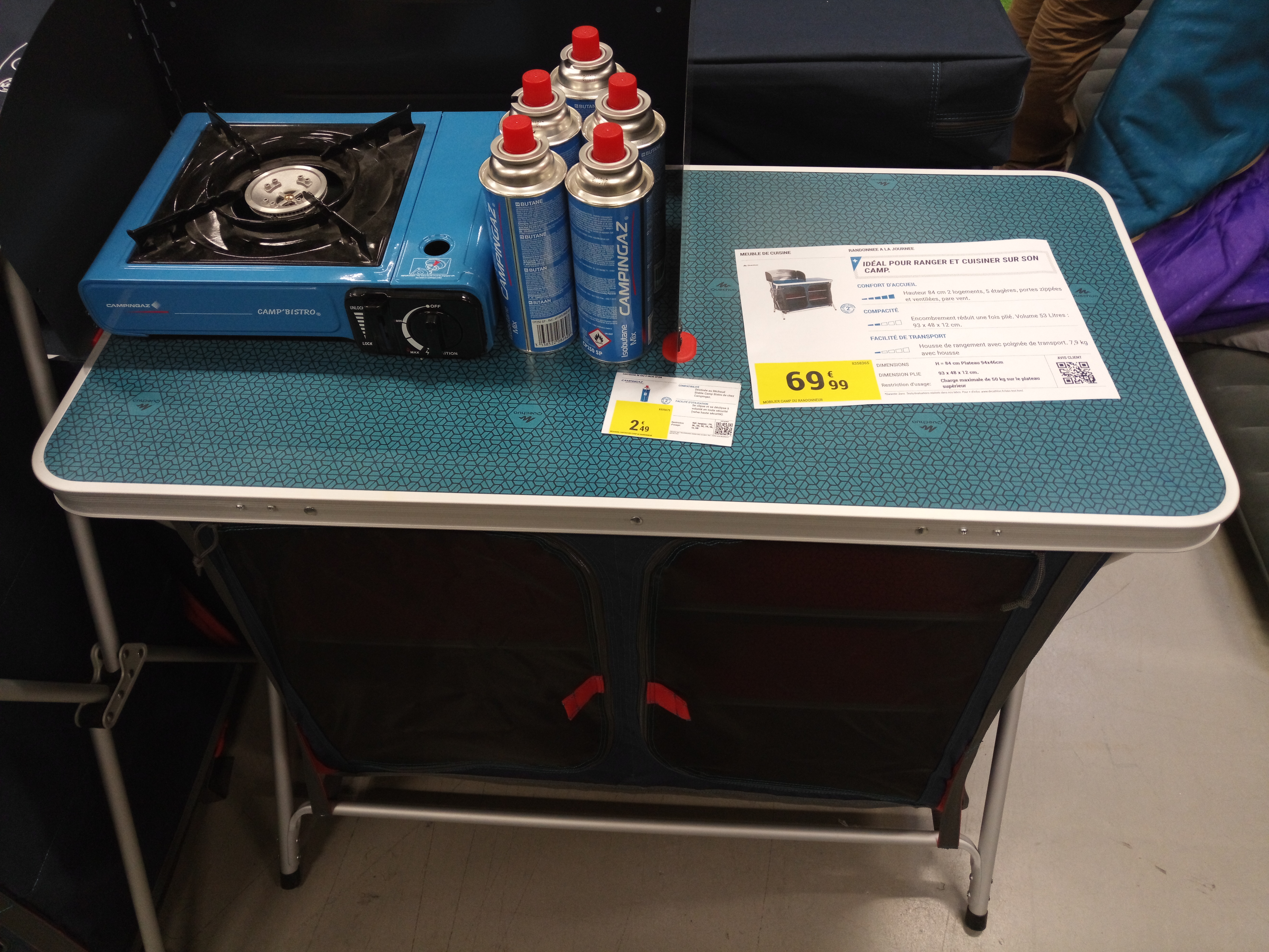 Belle expo de tente sur le parking par contre ça serait cool de pas les trouer on fais comment pour squatter la nuit avec la flotte qui tombe ?⛺️ Et arnaque à la caisse on paye 2 table pour 1 pas valable l'affaire🤡. Heureusement remboursé fissa. Prochaine fois j'irai chez intersport