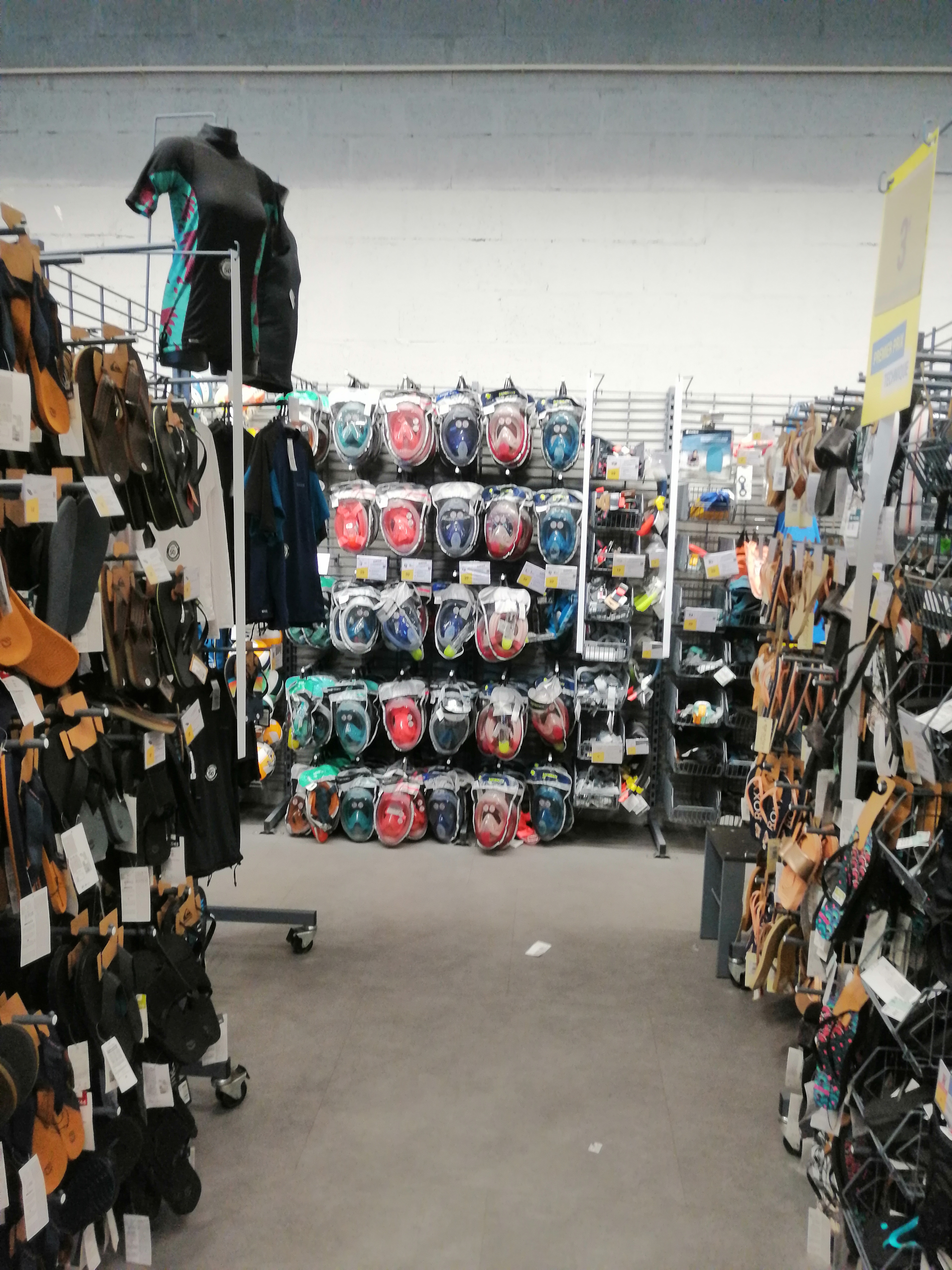 Décathlon Essentiel, donc d'une surface et d'un largeur de gamme très limité par rapport aux grands Décathlon que l'on connait. Il fera l'affaire pour des produits basiques (lunettes de piscine et brassards enfants pour ma part). On y trouve aussi le fitness, running, sport de raquettes etc. Il peut être utile de vérifier la dispo d'un produit, à partir de l'appli ou du site web.