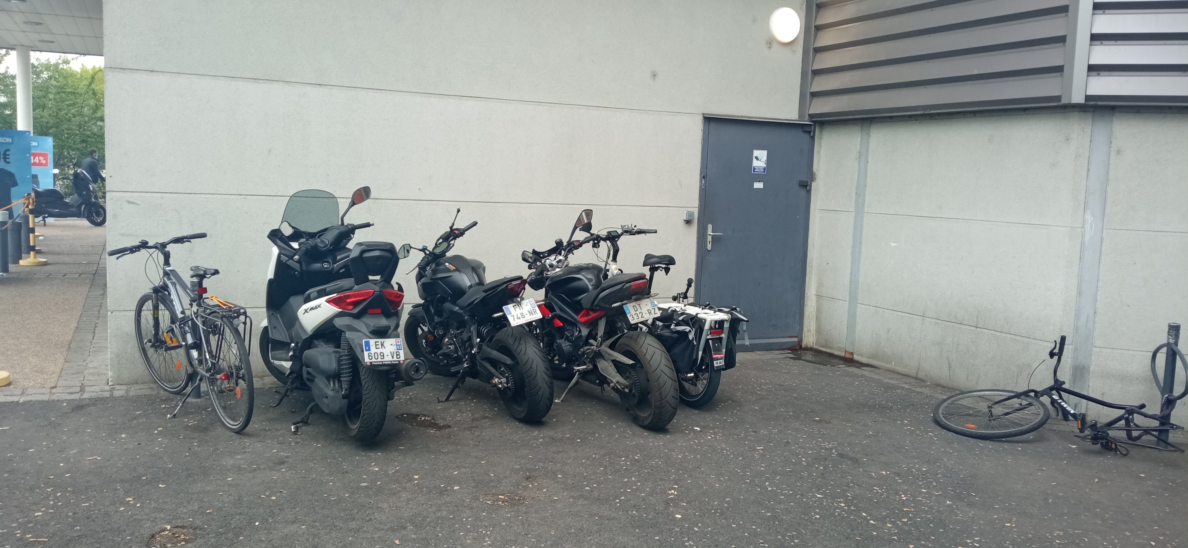 Le magasin est très bien avec un large choix d'articles pour divers activités, des rayons bien rangés et un systéme de double file (CB vs autres modes de paiement) bien pratique. Malheureusement je dois enlever deux étoiles car les vigiles des magasins alentours et/ou du centre commercial redirigent les motards et scootéristes qui souhaitent se garer en pleins milieu du trottoir vers... les arceaux vélo ! Du coup on galère à accéder aux arceaux car il y'a une foret de scooters devant et il faut avoir un peu de chances pour trouver un arceau libre pour accrocher son vélo car les scootéristes vont jusqu'à se garer entre les arceaux alors qu'ils n'accrochent pas leurs véhicules ! Merci de faire comprendre au gestionnaire du centre commercial et/ou à vos confrères (notamment de GEMO) que les scooters et motos n'ont rien à faire ni sur le trottoir ni sur les arceaux vélos: il faut les rediriger vers les places de parking voiture car c'est bien le seul endroit où ils ont le droit de se garer et ne gênent personne. Ne pas pouvoir stationner sereinement son vélo à Decathlon, c'est quand même un comble ! PS: Sur ces photos encore c'étais un bon jour car il y'a souvent une dizaine de scooters en plus devant les arceaux le samedi.