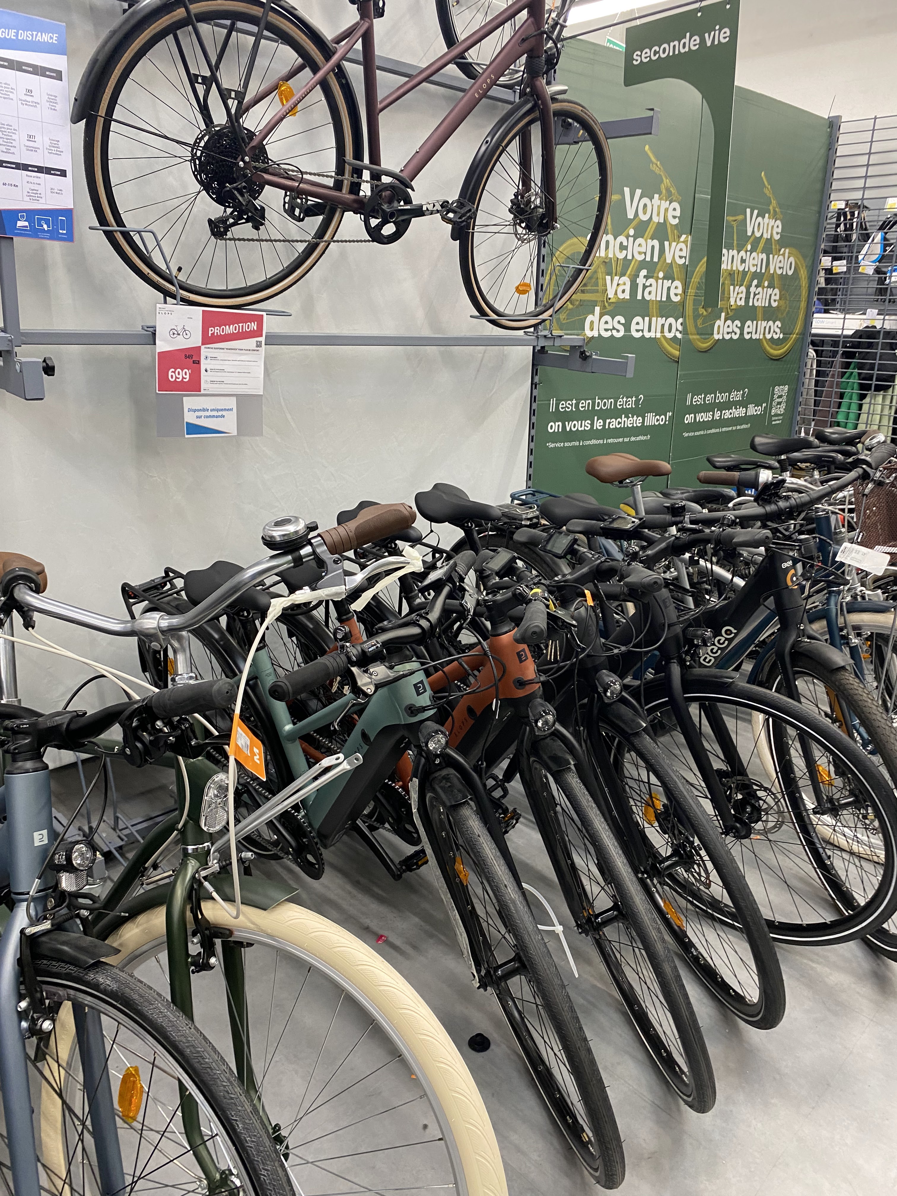 Très mauvaise impression : vendeurs pas souriants et faisant attendre sans un mot alors qu'on voulait acheter un vélo. Une fois qu'ils prennent le temps, ils ne connaissant pas leur matériel et ne savent pas comment régler un vélo. Je n’achèterai rien dans ce décathlon par manque de confiance.