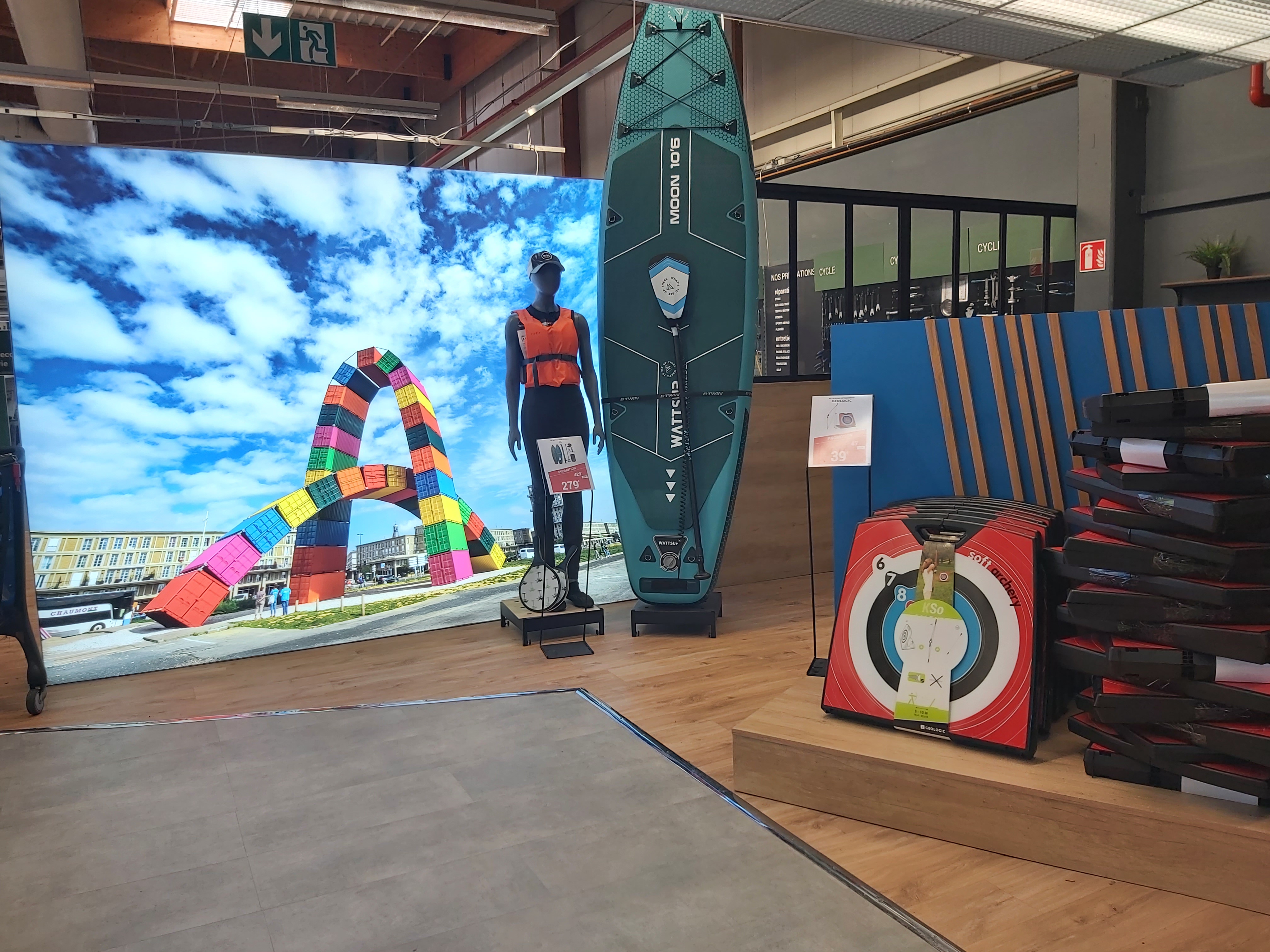 Magasin grand et refait a neuf (Devanture / caisses automatiques...). Grand choix d'activités pour l'été et grand choix de matériel de sport. Parking grand.