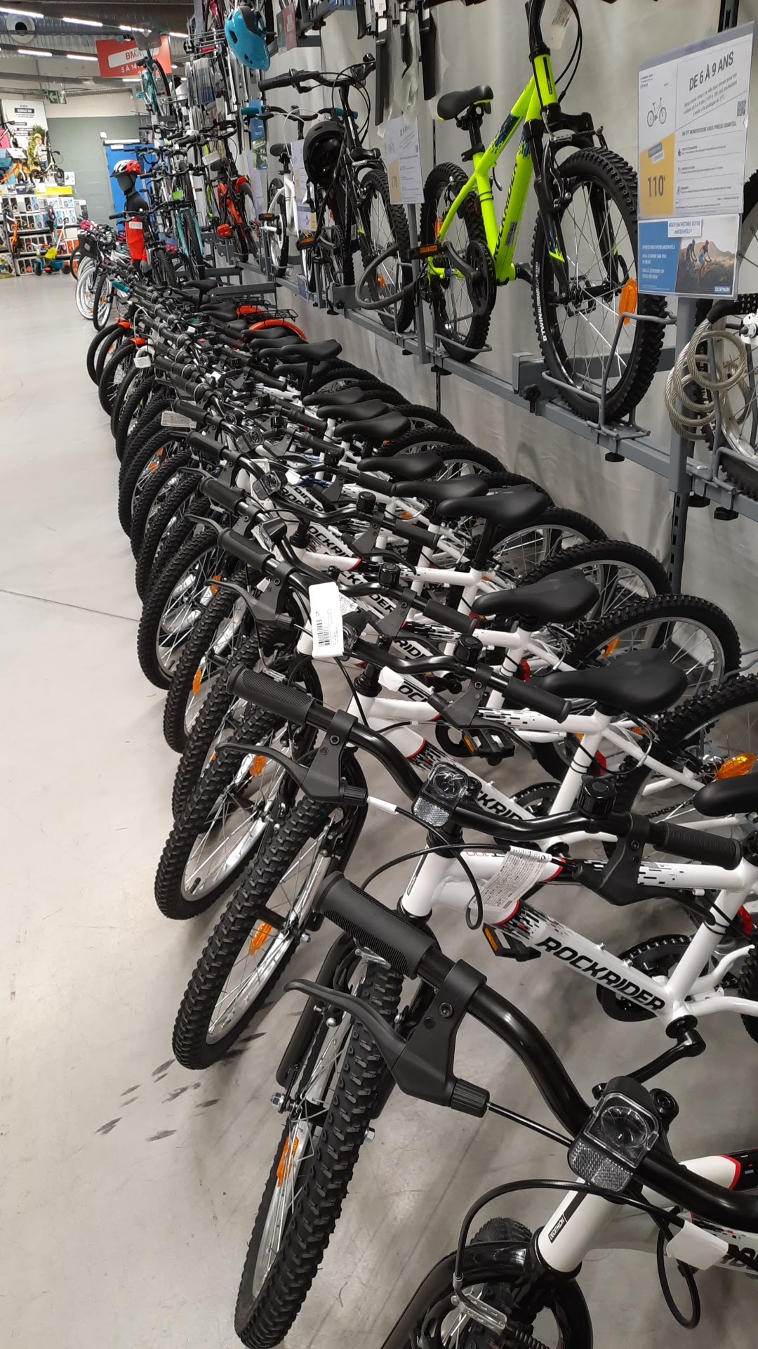 Nous sommes ravis de notre visite dans ce décathlon pour les vélos de nos enfants qui sont entre deux tailles. L employé dédié au rayon cycles enfants de ce jeudi 19/01 après midi a été de très bon Conseil. Il a pris le temps de faire essayer plusieurs modèles aux petits et nous a orientés vers la location puisqu ils allaient tous les deux changer de taille de vélo d ici quelques mois. Le magasin est propre, bien rempli et chaque employé croisé est agréable et souriant, notamment le vigile en poste à ce moment là. Le plus est la piste de course extérieure qui permet de profiter de ses achats avant de reprendre la route !