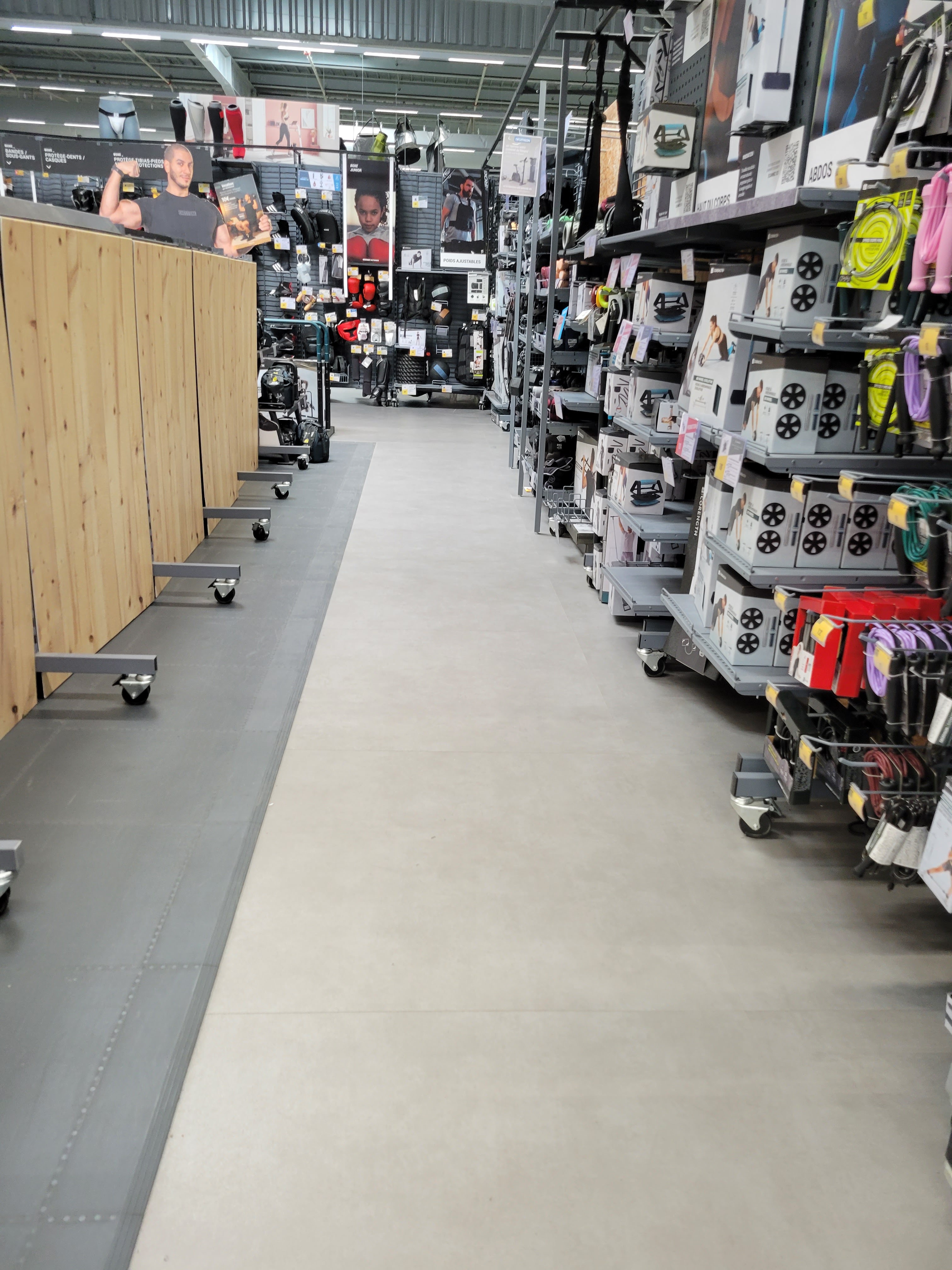 Depuis la réorganisation du magasin c'est n'importe quoi ! Ils nous ont fait une mode à la Ikéa sauf qu'on a pas envie d'acheter des trucs en plus : on est juste irrités de devoir faire toutes les pratiques sportives avant d'accéder à celle qui nous intéresse. Avant il nous suffisait de passer dans l'allée centrale pour repérer le rayon qui pouvait nous intéresser, maintenant on doit faire toute le parcours avant d'aller au caisse. Avant : 30 minutes pour acheter une paire de baskets, donc pour y aller sur l'heure de midi c'était parfait. Maintenant : plus d'une heure (le temps de trouver où elles sont et comment rejoindre les caisses). C'est pas pratique et ça nous fait perdre du temps. On n'a pas envie d'y revenir mais plutôt d'aller voir la concurrence...