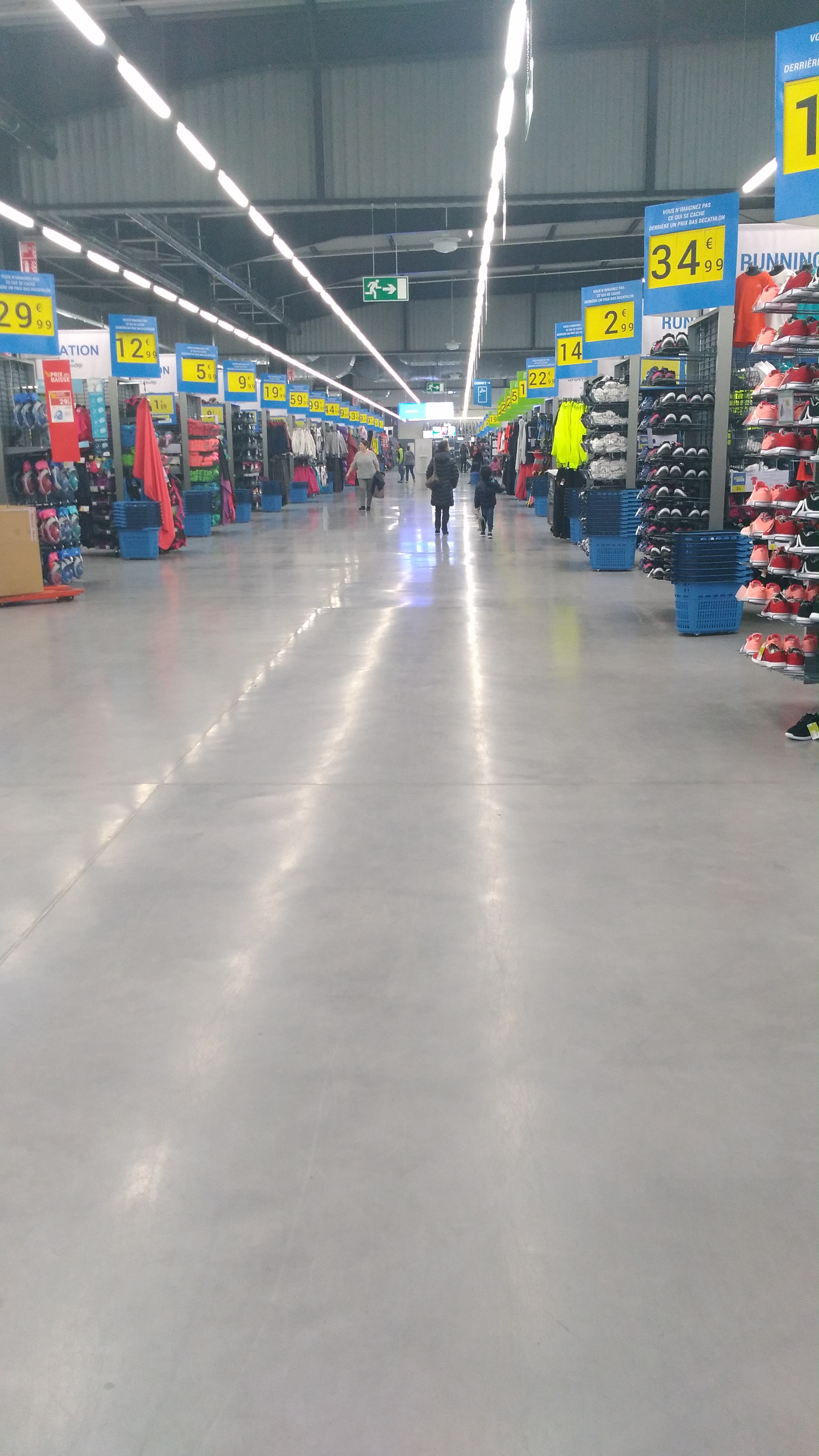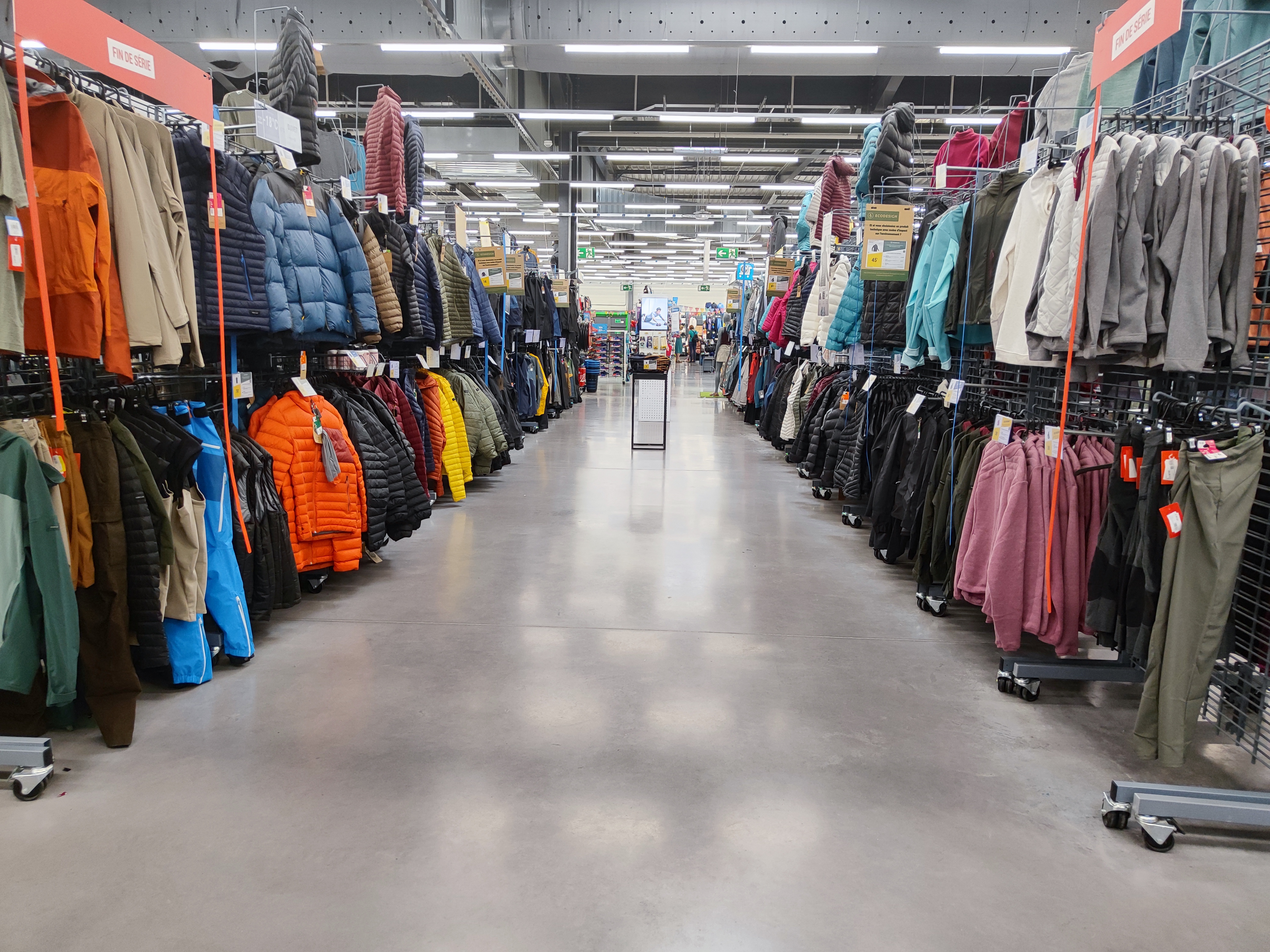 Très bien, rayons rangés et complets malgré quelques articles dévalisés (certainement à cause des prix attractifs). On s'y retrouve dans ce Décathlon ! Bien mieux que celui des Halles qui n'est là que pour faire genre.