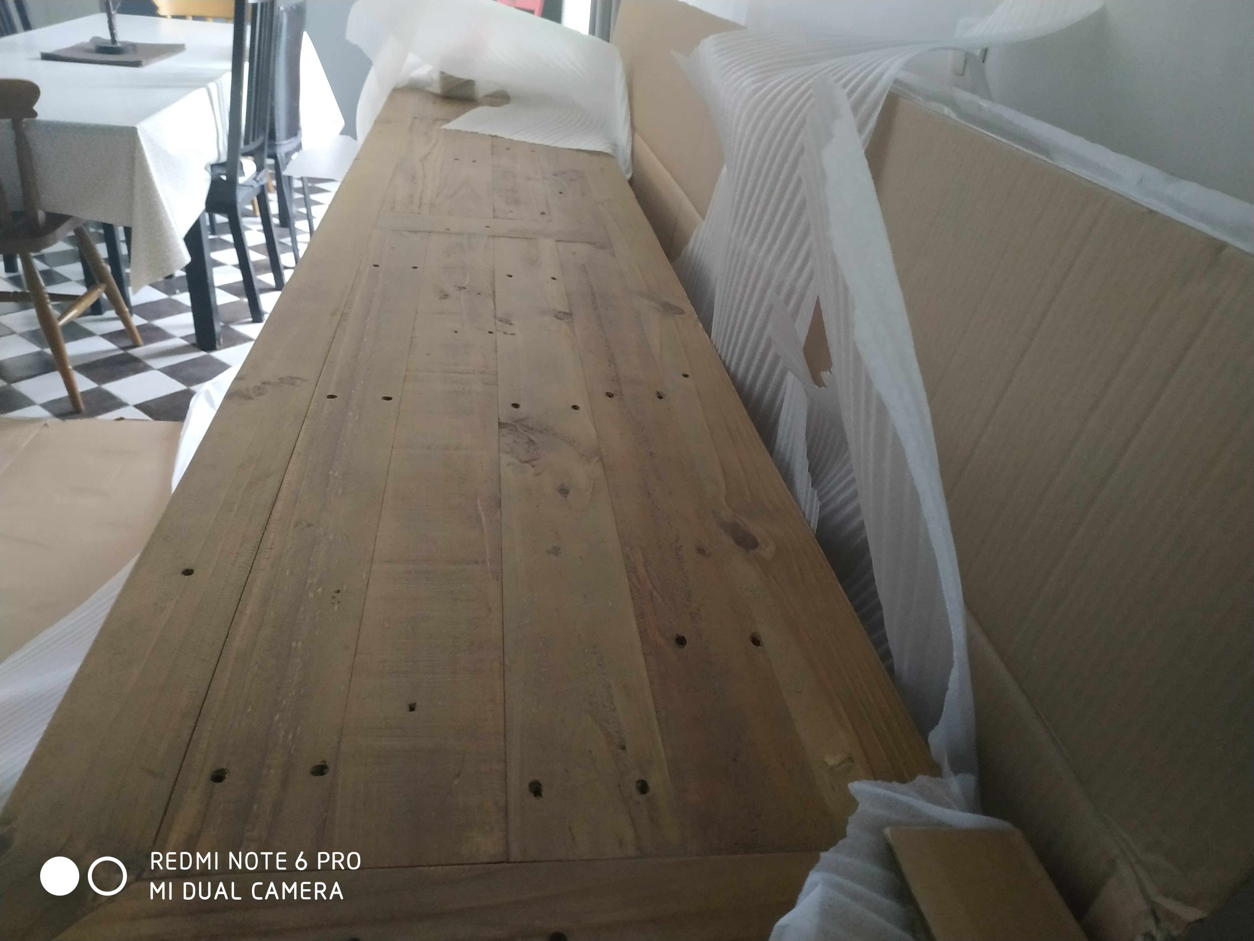 J'ai reçu ma table ce matin. Je rejoins certains commentaires sur la qualité du bois qui paraît bien fragile. Je veux bien concevoir que le bois est recyclé. Par contre, au déballage de ma table, un coin de celle ci était abîmé . Donc à ce niveau là, je suis bien déçue.