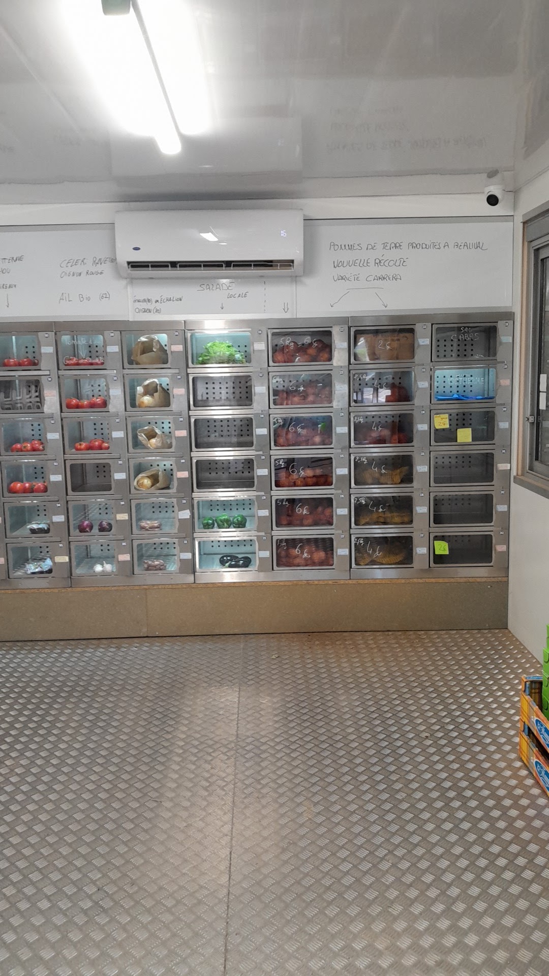 Au top plein de fruit et légumes même des boissons fraîche jus de pomme fraise yaourt fromage vraiment je conseille ce distributeur automatique