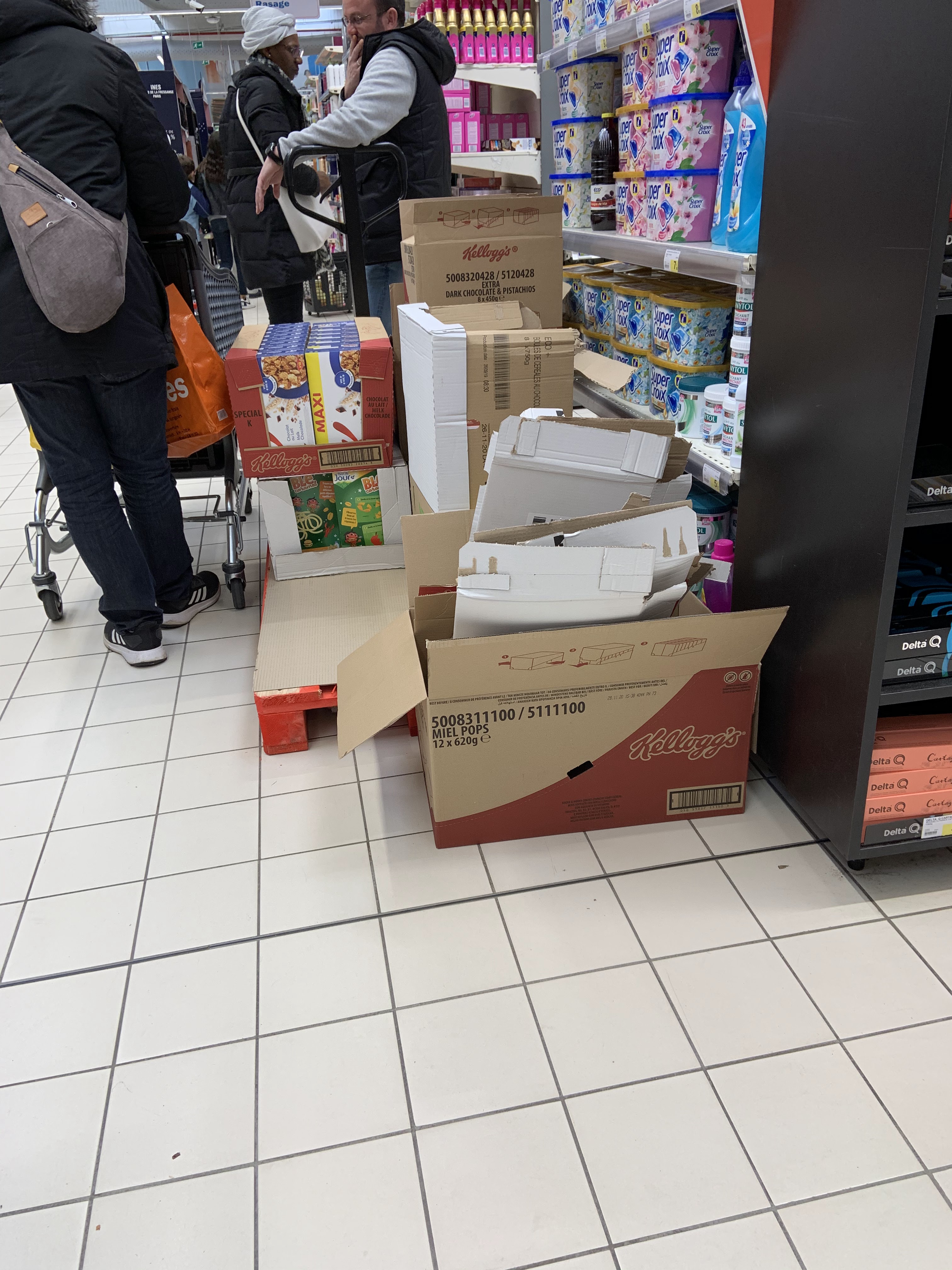 Des palettes partout dans les rayons un samedi !! Quelle galère de faire ses courses dans ce leclerc !