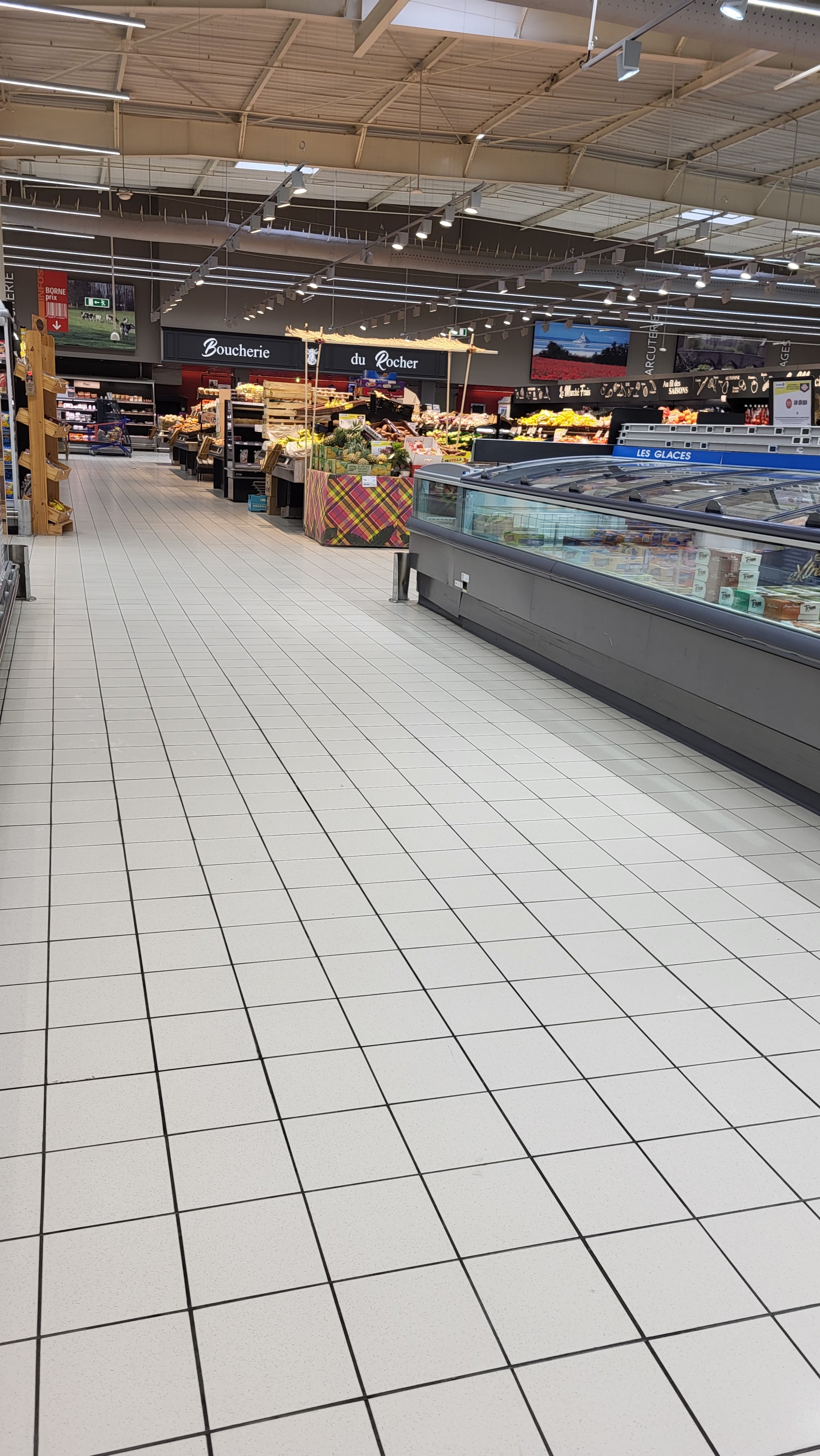 Super magasin, on trouve de tout, pour tous les budgets. J'enlève 1 étoile car je trouve qu'il est mal agencé. On s'y perd dans les rayons. A la boucherie, il n'y a pas de tous. Ne chercher pas de chair de veau par exemple. Le personnel de la poissonnerie est vraiment sympathique, souriant, vous propose même des recettes comparé à la boucherie. Gâteau vraiment sympa, il y en a pour tous les goûts. Propre ainsi que les toilettes. Rayon fruits et légumes au top ainsi que son personnel. Je recommande