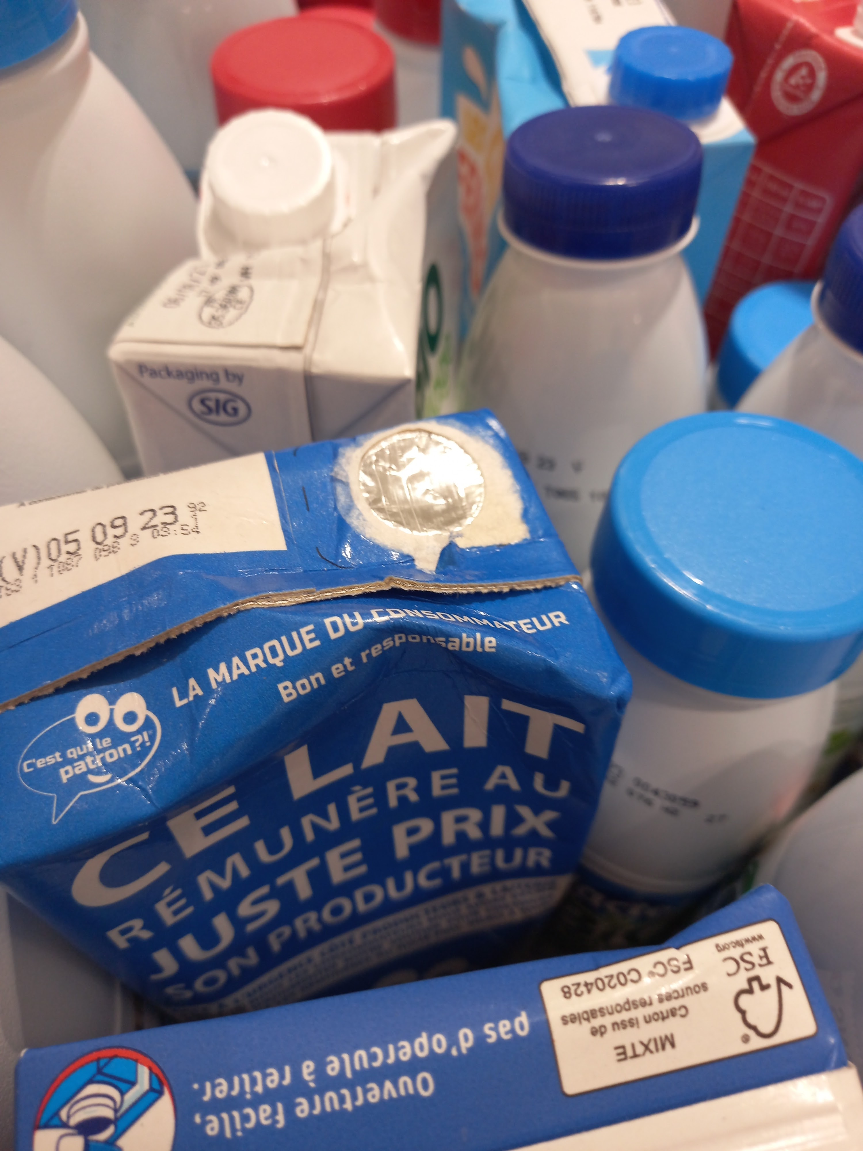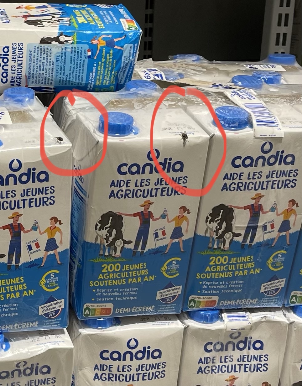 Je ne comprends pas au rayon lait il y a des packs de lait crevé avec du lait caillé dessus avec des mouches sur les packs de lait. Question qui s’occupe du rayon du lait ? Est-ce que cette personne ne voit pas ce qui se passe est-ce que les clients se sont plaint de l’odeur et des mouches?. Je fais mes courses une fois par semaine dans ce Leclerc de Bonneuil aujourd’hui je me sent obligé de le signaler faites remonter l’info au directeur SVP Photo à l’appui