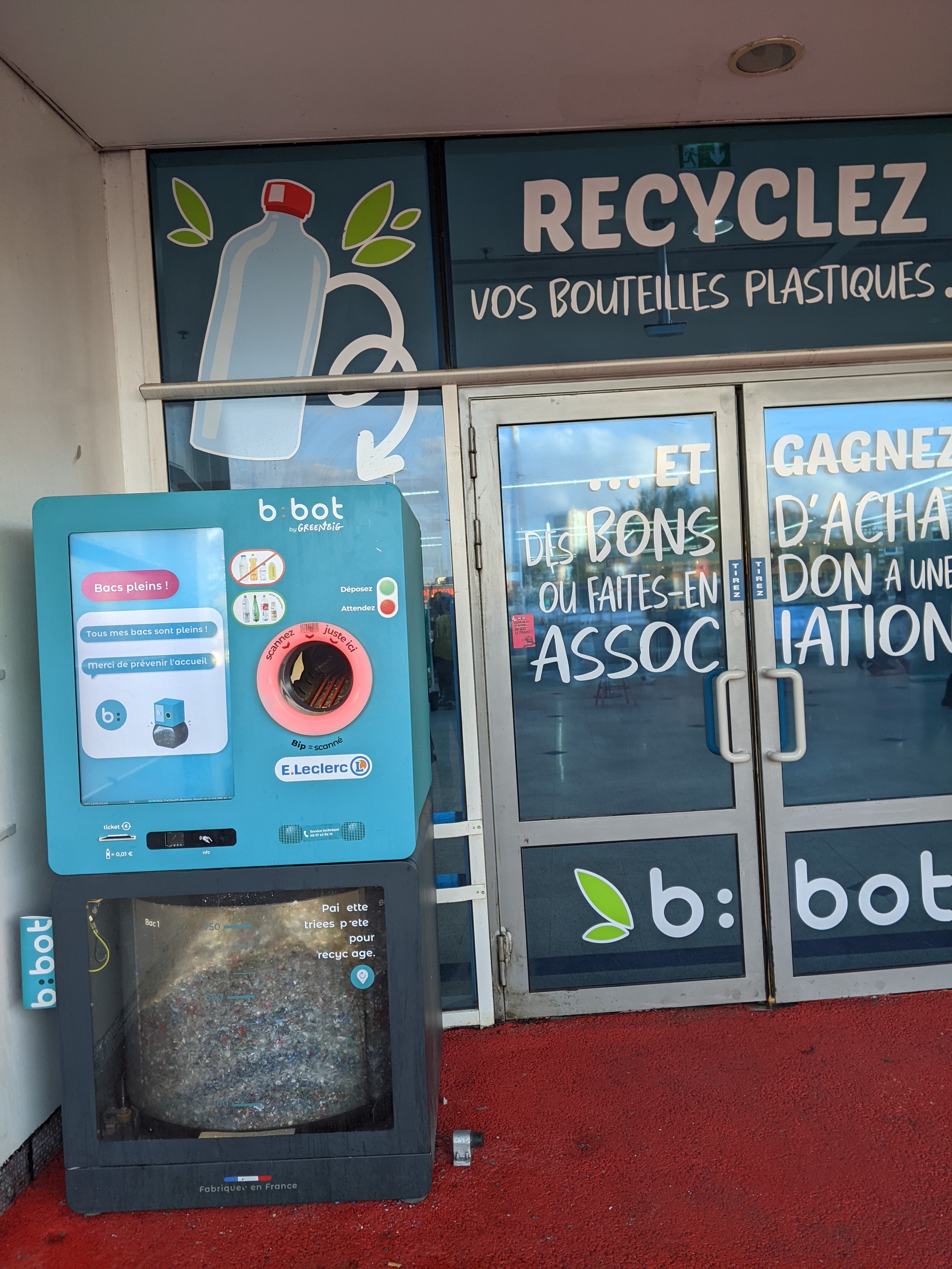 Attention, l'échange de monnaie en bon d'achat est payant : 9,9 % de frais ! Par contre beaucoup de choix parmi les produits. Quelques produits sans prix (pour chiens), et une borne ne le reconnait pas, mais c'est OK à une autre borne. Fromage pour raclette pas toujours top même en étant loin de la date de péremption. Édit 17/01/2023: Beaucoup de légumes manquent (courgettes, mandarines ou clémentines provenant de France…)