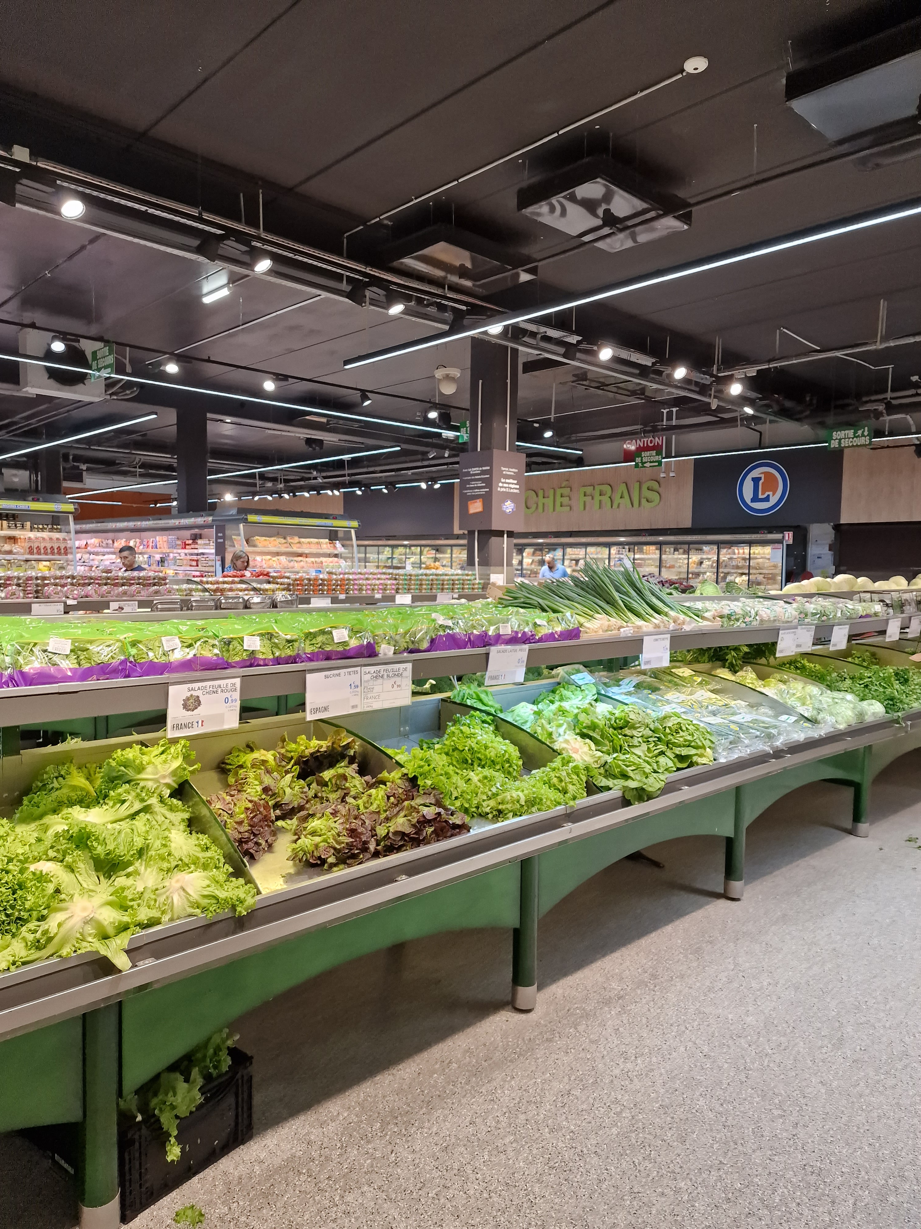 Grand leclercl le petit plus, le large étalage de fruits et légumes qui ont l air frais . J ai acheté des bottes de menthe et elles sentaient très fort. Il y a un large choix de prix et de produits
