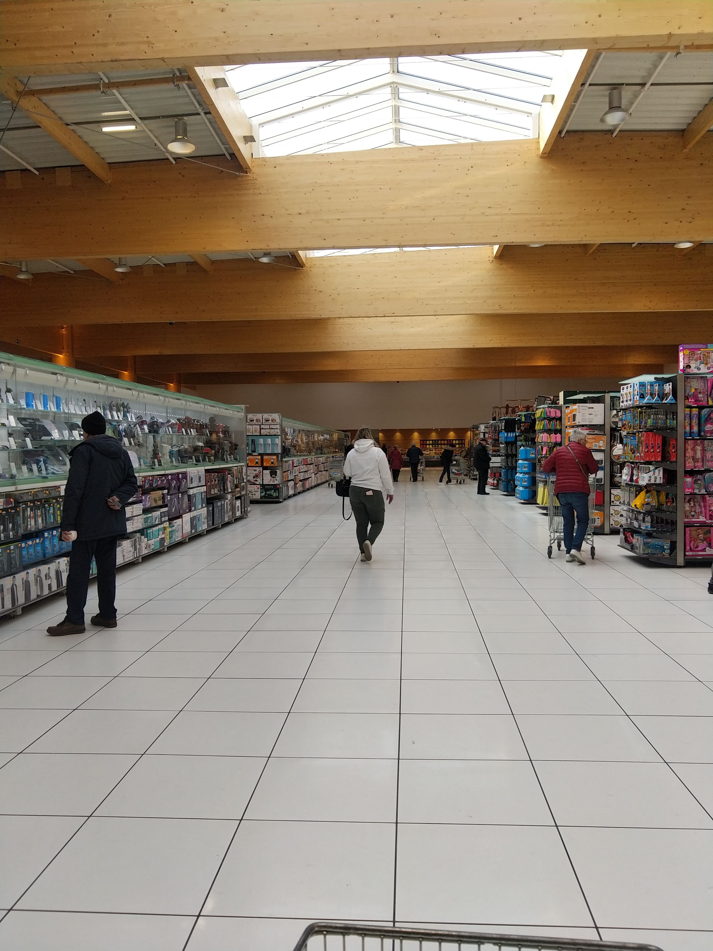 Je suis tombé sur ce magasin à grande surface lors d'une promenade matinale lors d'une visite à Clermont Ferrand en janvier 2023 depuis Toronto et j'ai été époustouflé par l'architecture de l'intérieur. Bien planifié et conçu. Lorsque vous allez au magasin, regardez le plafond. La grande structure en bois à poutres ouvertes est bien conçue. Je dirais magnifique, stupéfiant. L'espace est bien planifié. Les allées sont larges et spacieuses. Super endroit pour faire du shopping. Beaucoup de stationnement gratuit.