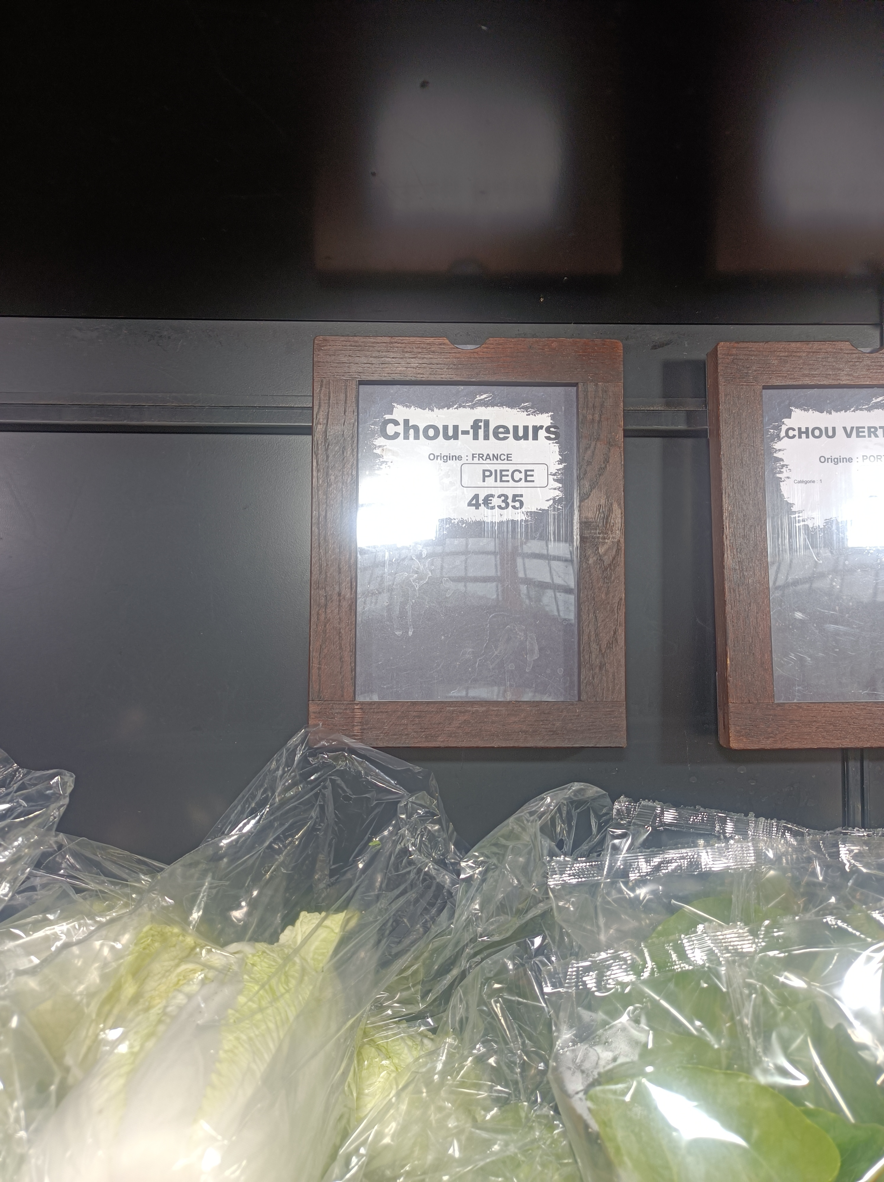 Plus de 4 euros le choux fleurs .... Sans rire ??? Sachant qu'à Côté Halles on le trouve a 2 euros et a Intermarché a 2.50 euros .... Une honte ils ont augmentés les fruits et légumes d'une force . 6.30 euros pour une barquette de raisins qu'on trouve a 4 euros ailleurs .... Et tout ça vient de France ..... Incroyable