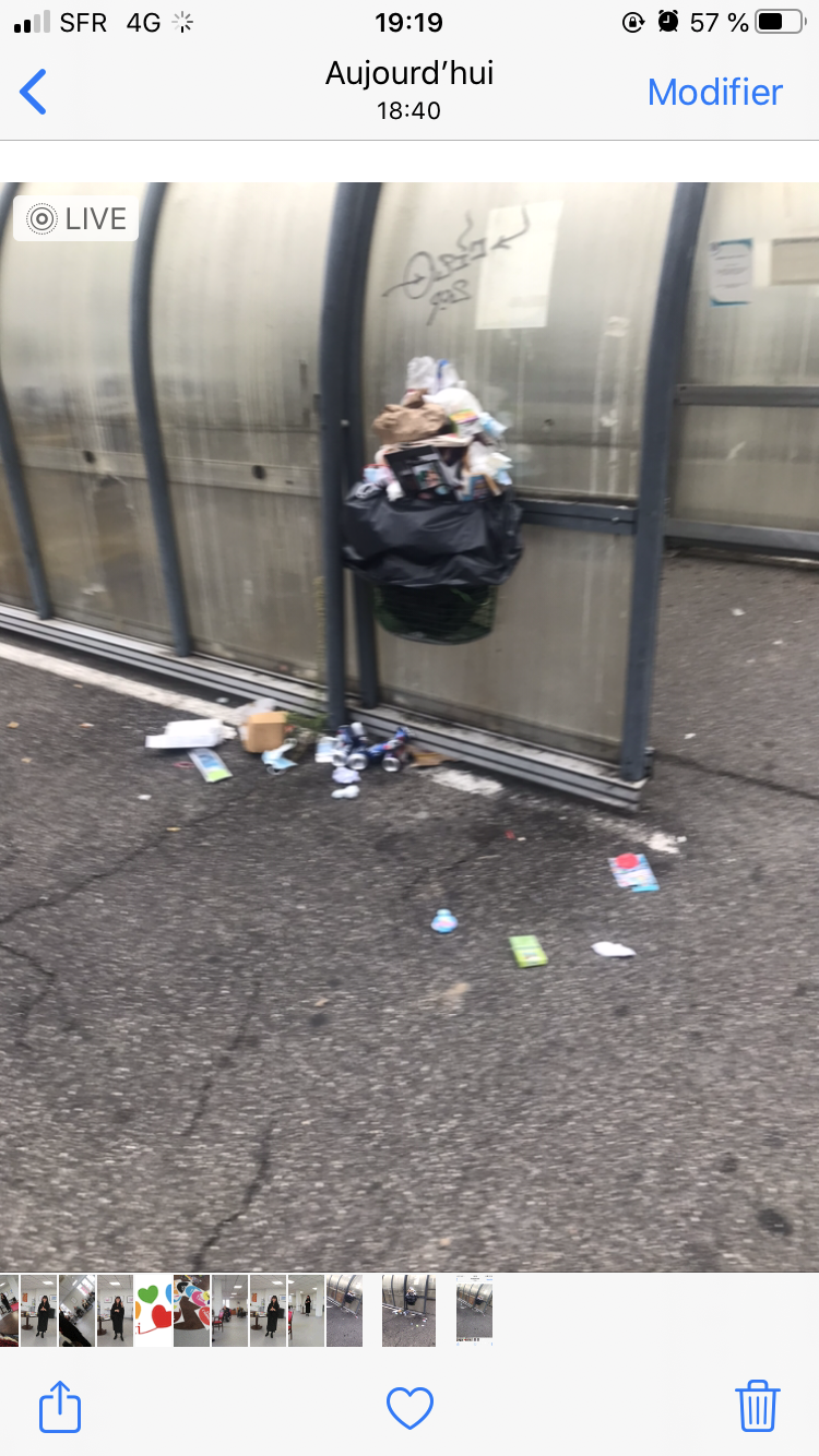 En allant faire mes courses cette après-midi, je trouve une poubelle dans cet état. Je vais le signaler à l'hôtesse d'accueil qui me dit prévenir un agent d'entretien (qui se moque de qui ?). A ma sortie (cf horaires différents des photos), le spectacle le plus écœurant est tel quel !! C'est juste honteux !!! Ou est le respect de la nature ??? Quelle belle image du magasin,vraiment !!!! (l'étoile est pour pouvoir publier mon avis je précise).