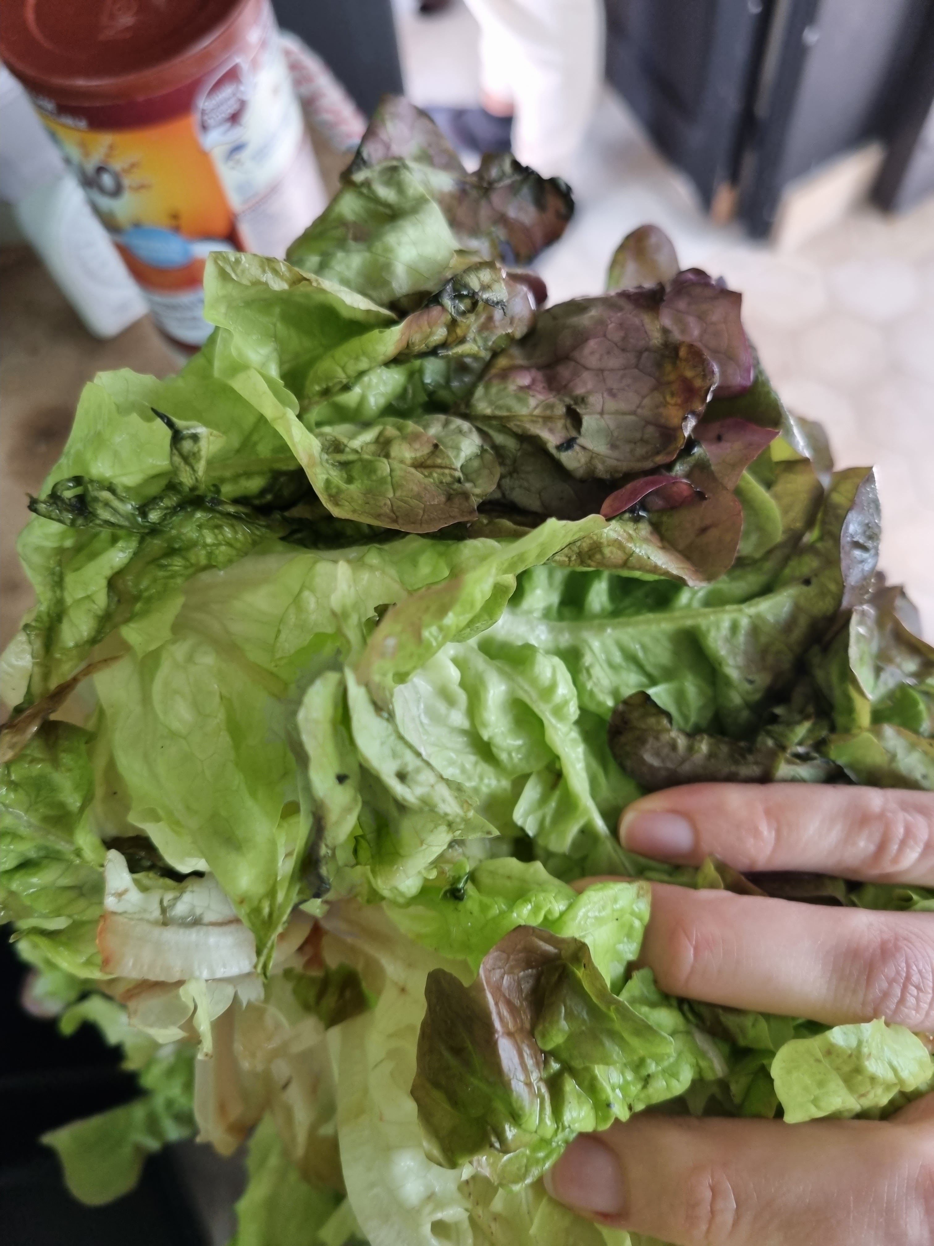 C'est sérieux la salade pourrie qui se décompose dès qu'on la sort sur sac ?! Champignons moisis.
